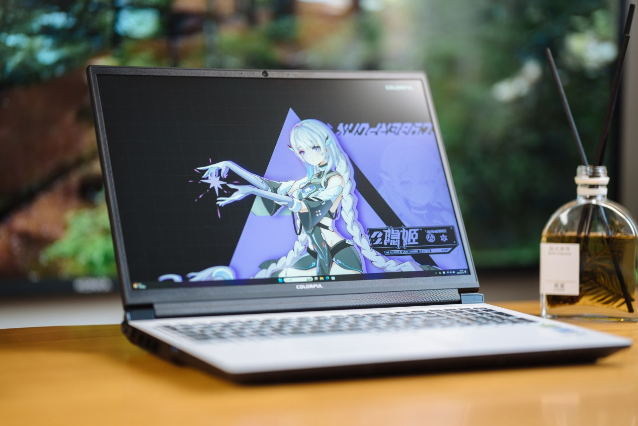为了让七彩虹隐星P16 Pro更具备品牌IP属性,虚拟角色隐姬莫伊莱成为了隐星系列代言人,冷漠、天然呆、善良、勇敢的个性也正好切合七彩虹隐星P16 Pro的基调。在整体设计上,笔记本可以用夯实来形容,整机重量来到游戏本常见的2.5kg,同时笔记本边缘棱角处理得当,在单手持握的时候有分量感,但不会割手。由于16英寸的缘故,初次上手也会比想象中要更轻一些。