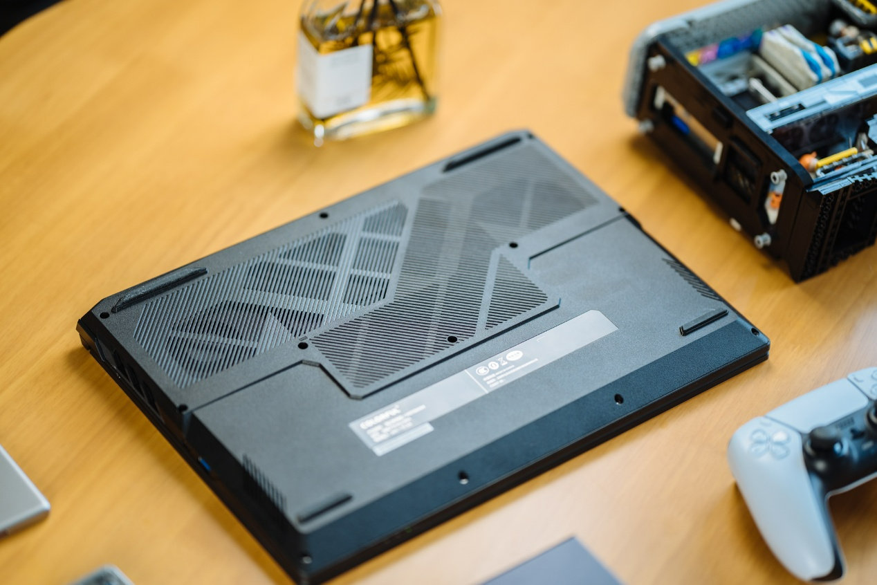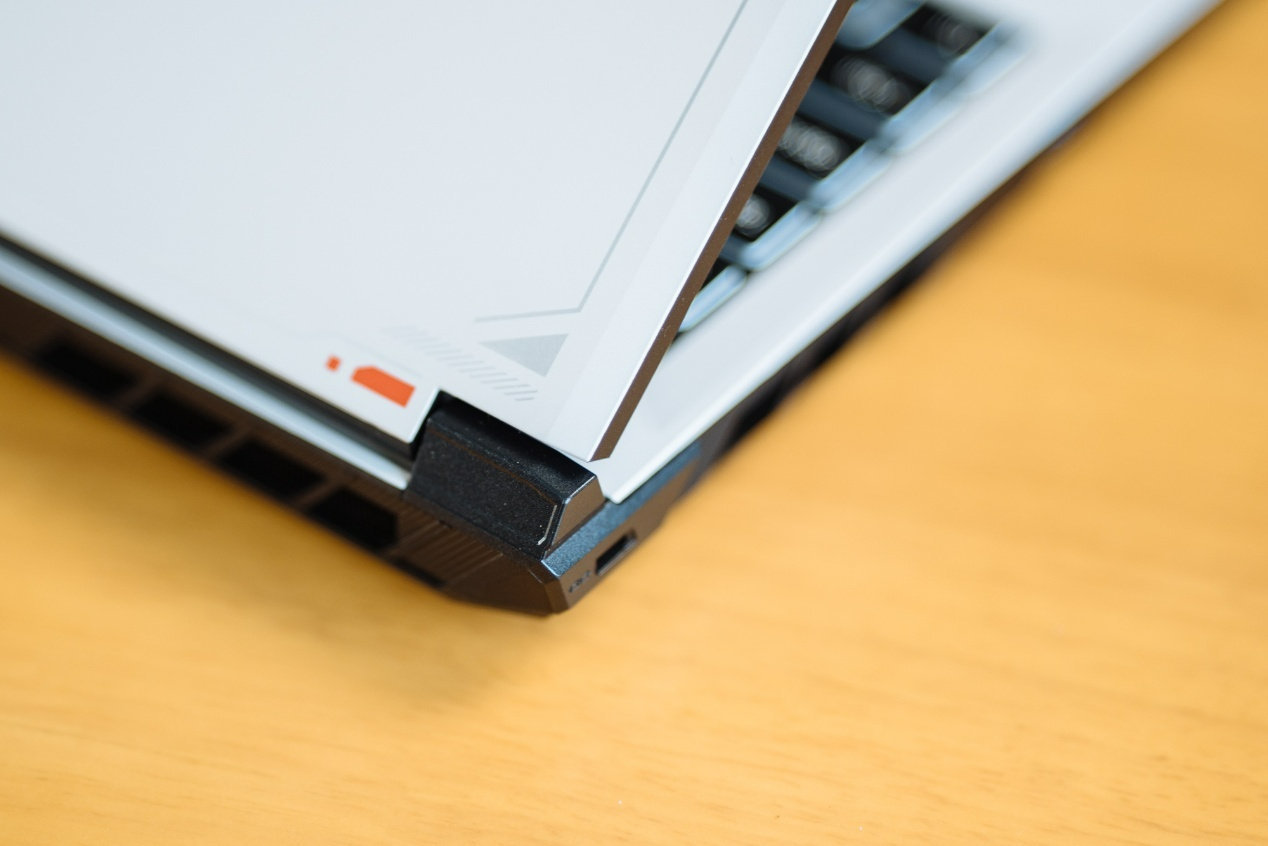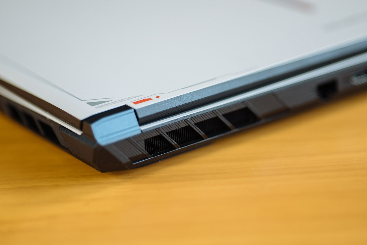 同时,笔记本边缘加入类似未来战机的图腾设计,增加了游戏本的氛围感。