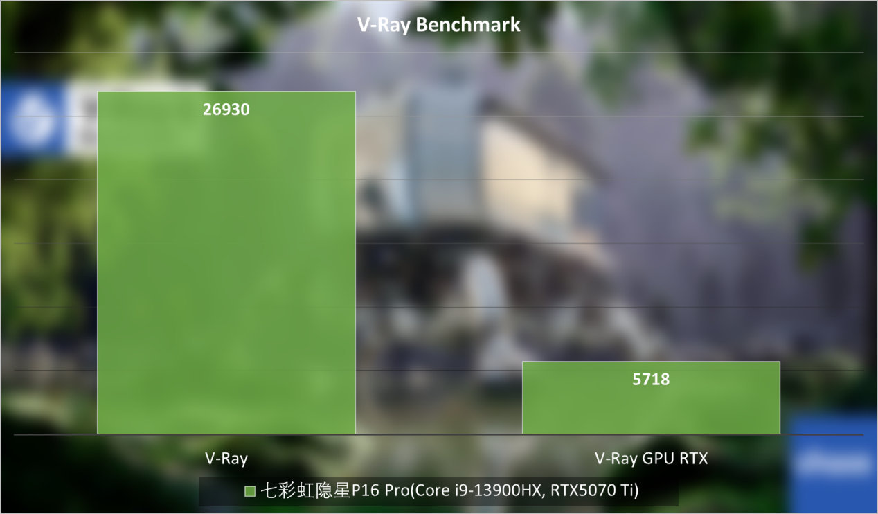 同样,考验笔记本CPU和GPU渲染性能的V-Ray Benchmark中,可以看到七彩虹隐星P16 Pro给予了充足的性能释放。