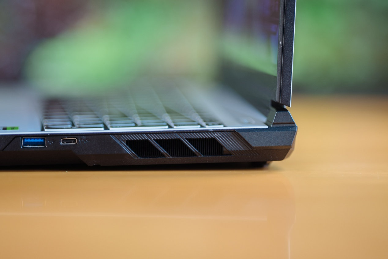 同时在扩展上,也能看到七彩虹隐星P16 Pro给的足够丰富,笔记本右侧分别提供了1个USB-C 3.2 Gen2且支持USB-PD和DisplayPort 2.1视频输出,1个USB-A 3.2 Gen2。右侧则提供1个USB-A 3.2 Gen1与3.5mm二合一耳机接口,用于耳机、鼠标、游戏控制器的基础扩展。