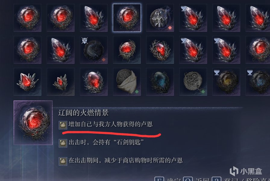 這幾天的遊戲經歷最大的感受,莫過於本作的“出血”的超模,太刀自帶出血和遺物詞條出血可以疊加, 外加切腹+感應就有很恐怖的出血效率。不過想要玩的好玩的爽,除了堆出血外,各種獲得“盧恩”效率詞條的遺物也非常的實用。