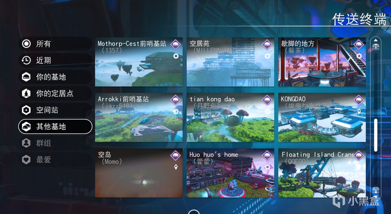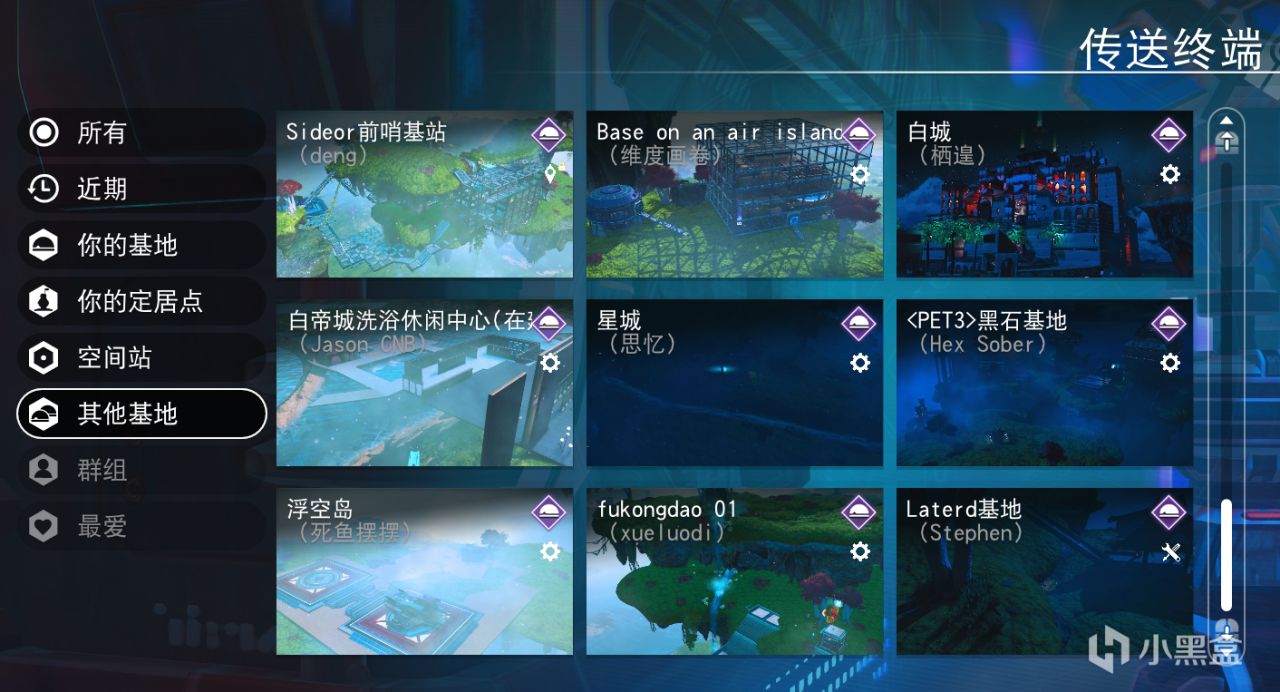 下圖是傳送門列表展示的一些基地。