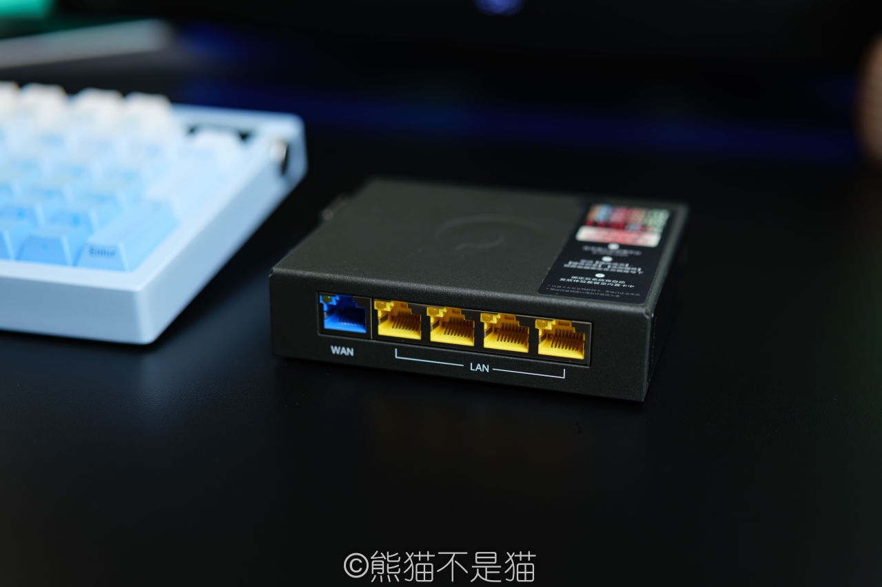 另一侧则是一个WAN口和四个LAN口,非常标准的接口配置,提供了足够的有线网口。