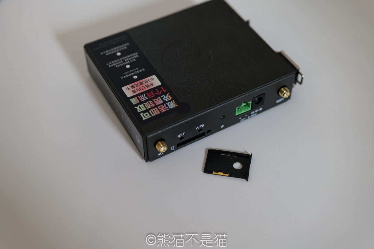 除了机身内置的联通卡,在路由器顶部还有一个SIM卡槽,可以用卡针打开。需要注意的是,这个卡槽是大卡设计,如果你用的是Nano SIM卡,就得另外准备一个卡托才能使用。