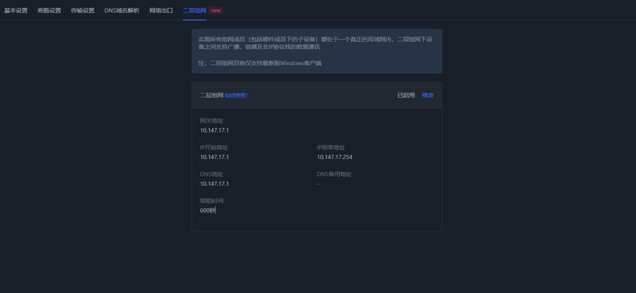 组网完成后,就能远程控制这些设备了,哪怕它们在不同的地方也能轻松操作,比如前端管理、远程CPL等功能都支持。而且蒲公英还支持二层组网,开启之后可以把所有成员设备拉进同一个真正的局域网中,这样不仅能互相广播,还能传输那些不基于IP协议的数据。