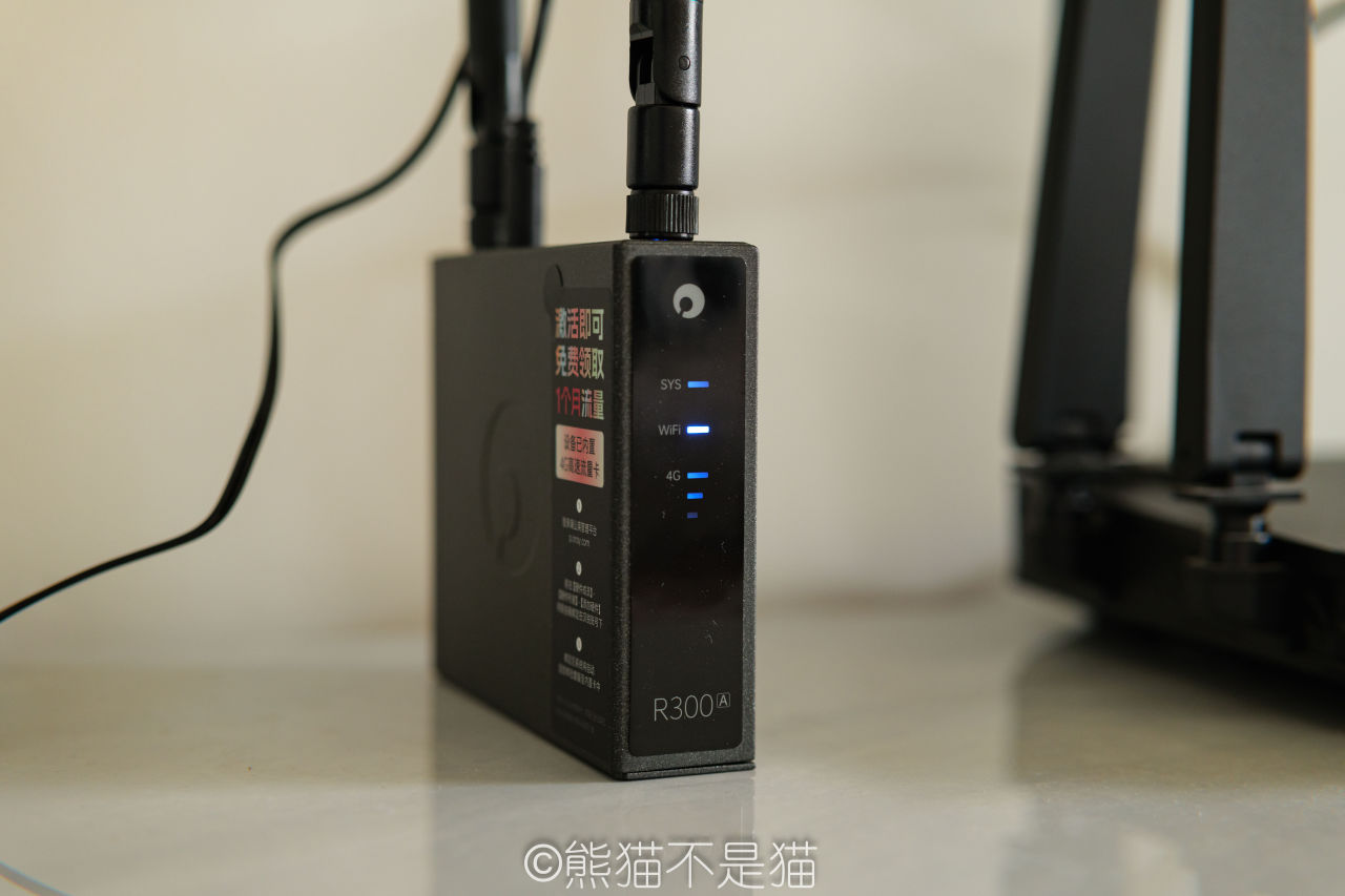 路由器正面贴着一张免费流量领取流程图,从这张图也能看出,机身内部已经预装了一张流量卡(内置为联通的ESIM)。也就是说,到手之后不需要额外购买外置SIM卡,就能先试用一下网络,这一点还挺方便的。