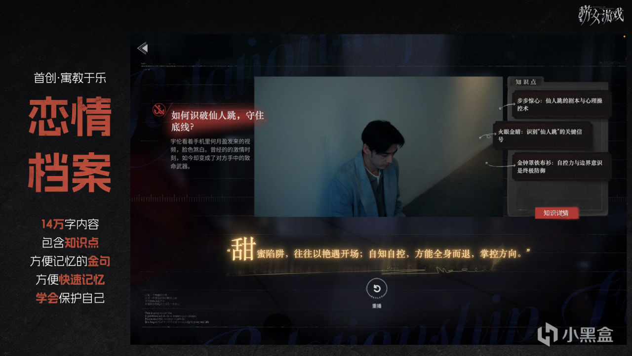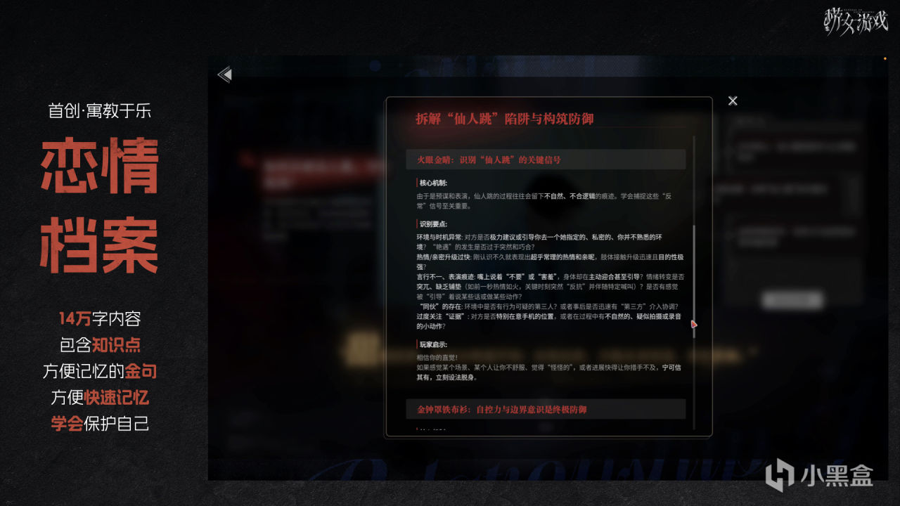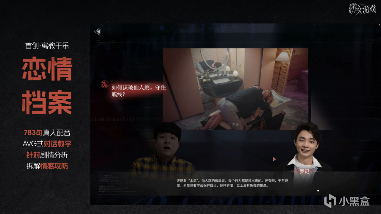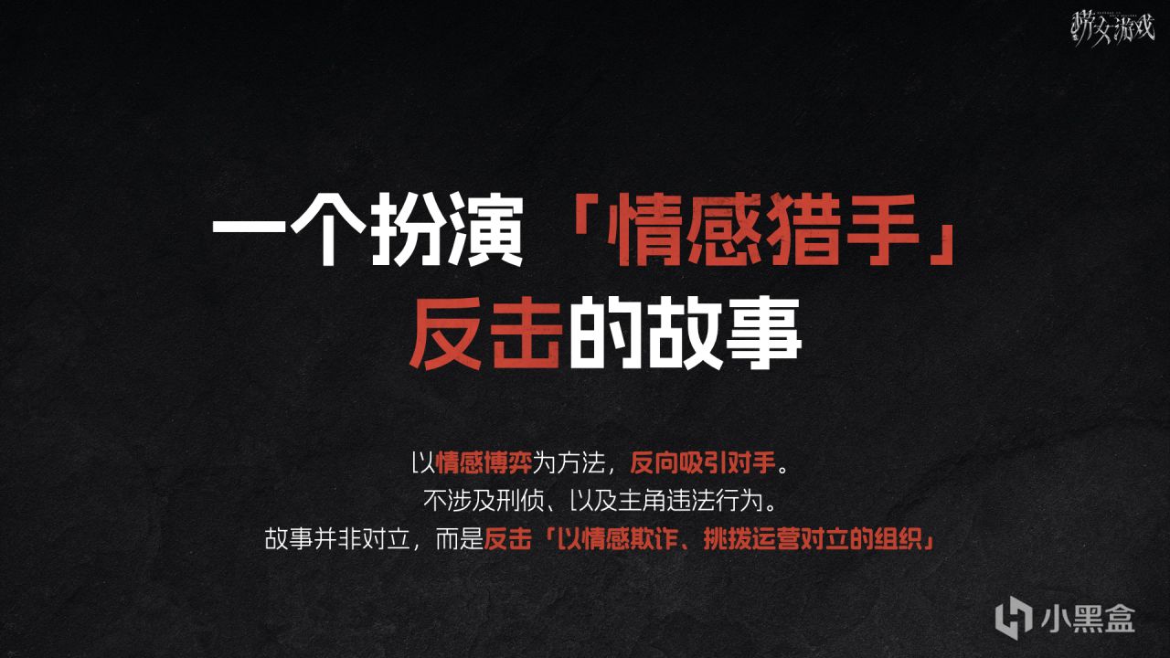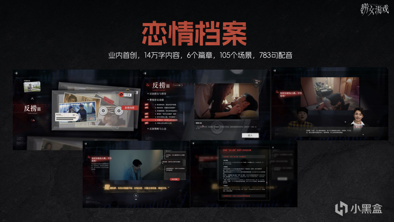 游戏是国内首部情感反诈互动影游,游戏内包含一个单线约5小时体验时长(总素材量7.8小时)的原创互动故事。