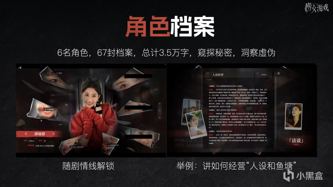 这个项目最难的就是角色,因为这些角色都是“灰色”的。我们采用了典型标签+复杂内心的设计方式。这些角色除了可以爱和恨,还可以通过了解她们学到一些知识(胡导最擅长的领域,都市的复杂情感)。