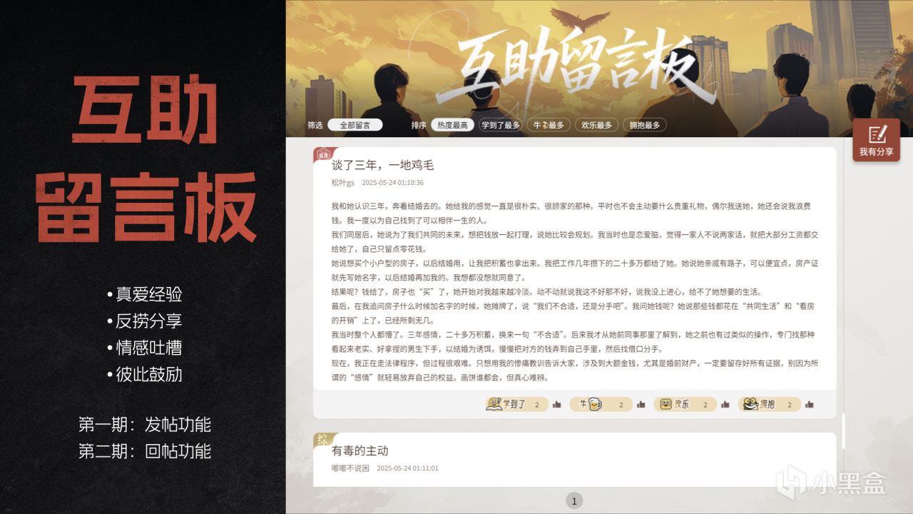 上线后第一期会开放留言功能,如果你希望把自己的经历分享给更多人,还可以允许我们将它放入恋情档案【共创篇】中。我们会给所有加入【共创篇】的兄弟,赠送游戏等价的徽章(或其他周边)。