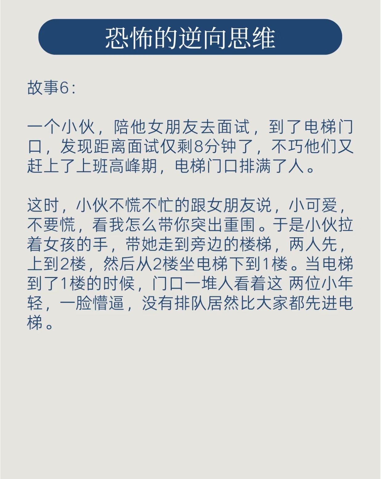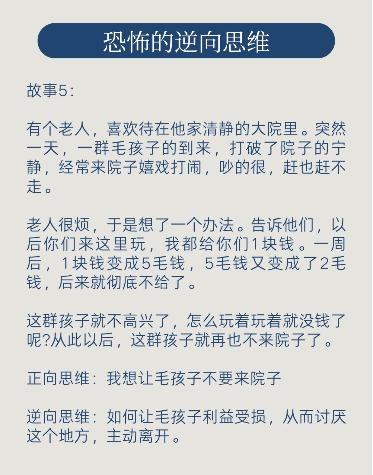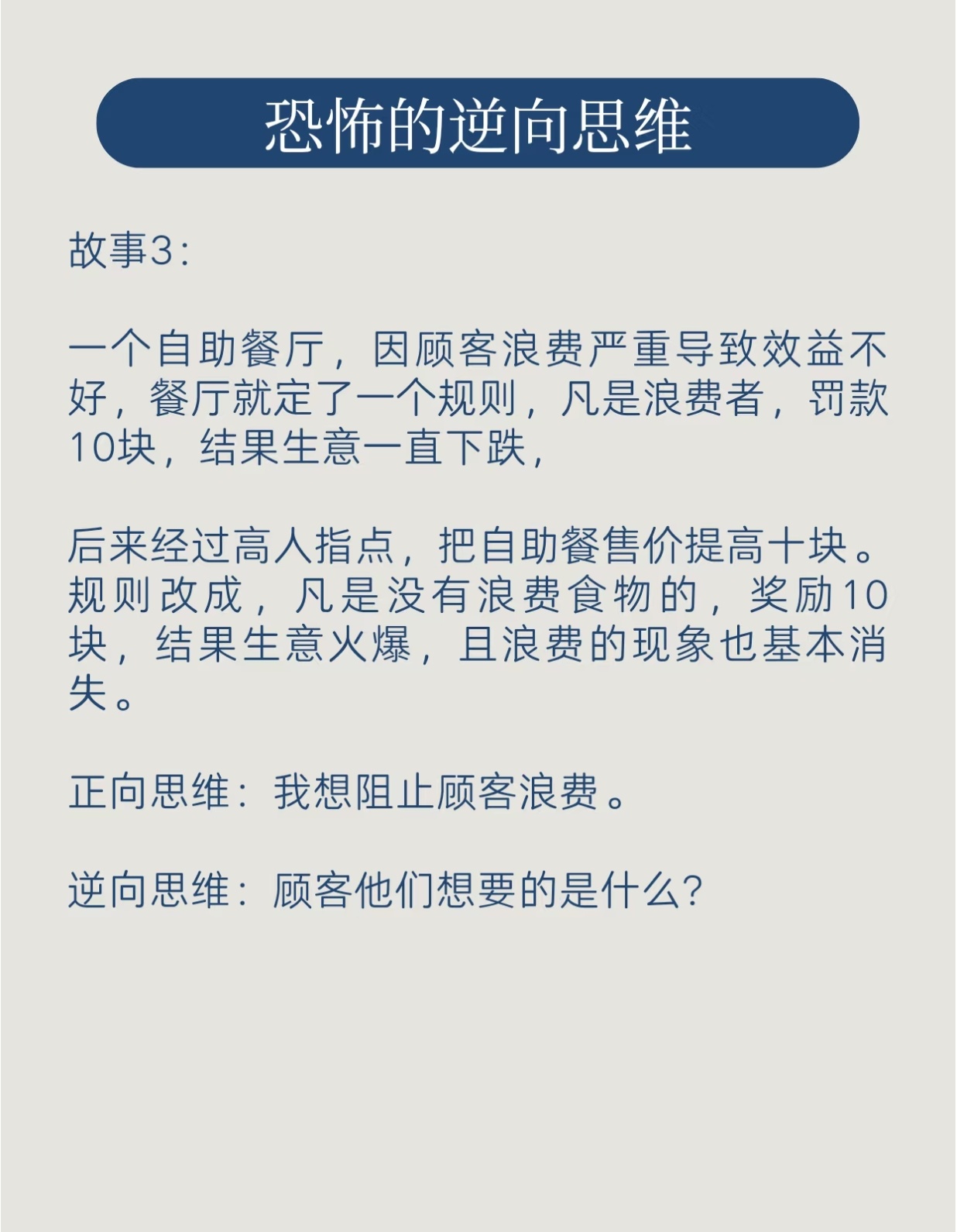 个人的逆向思维能力,对于全面人才的创造能力及解决问题能力具有非常重大的意义。生活工作中,无论处于怎样的劣势或者困境,想要摆脱自己常规思维的羁绊,不如反过来想想。