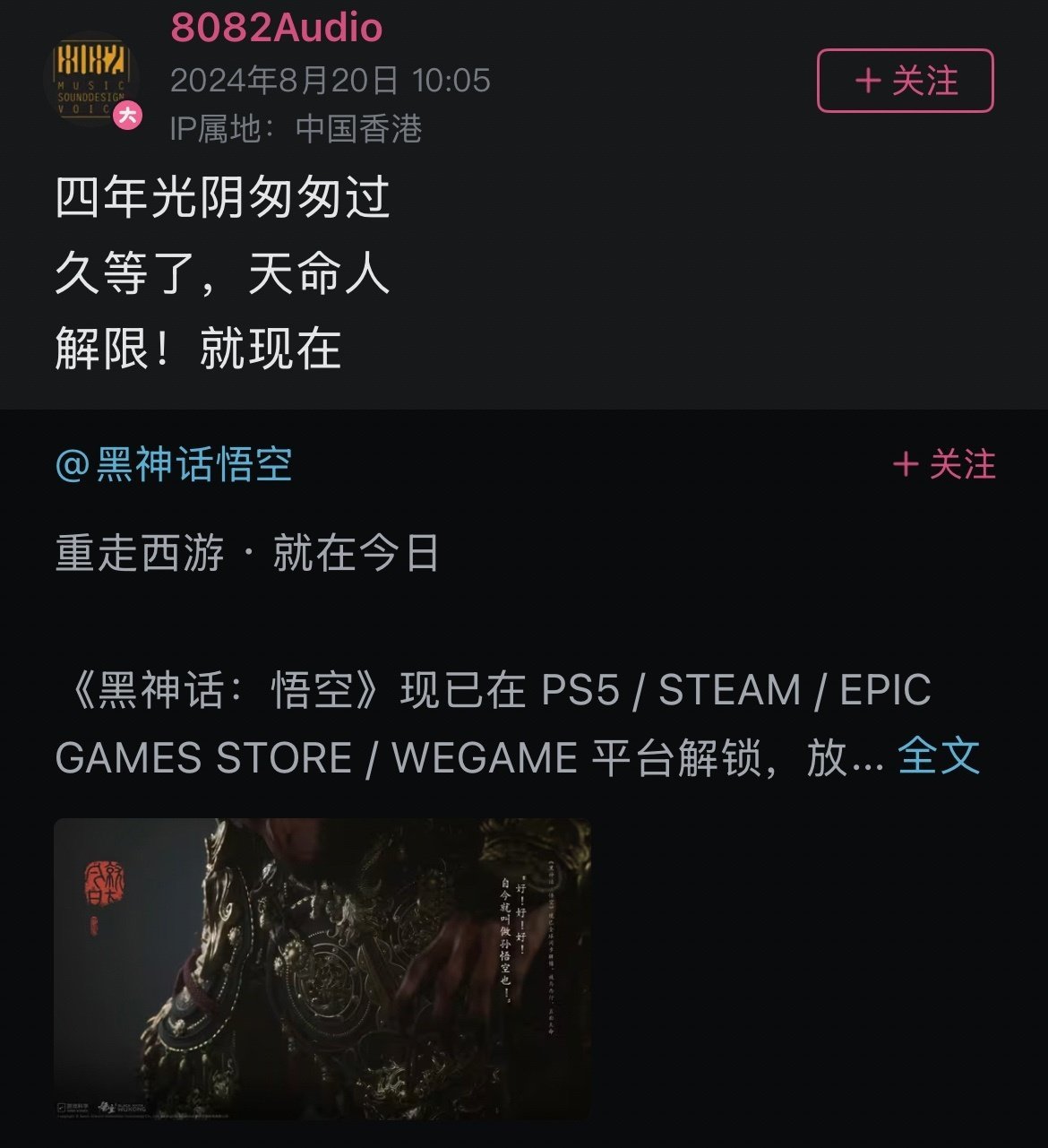 大概率《劍星》的中文配音和《黑神話》一樣是由該工作室負責的