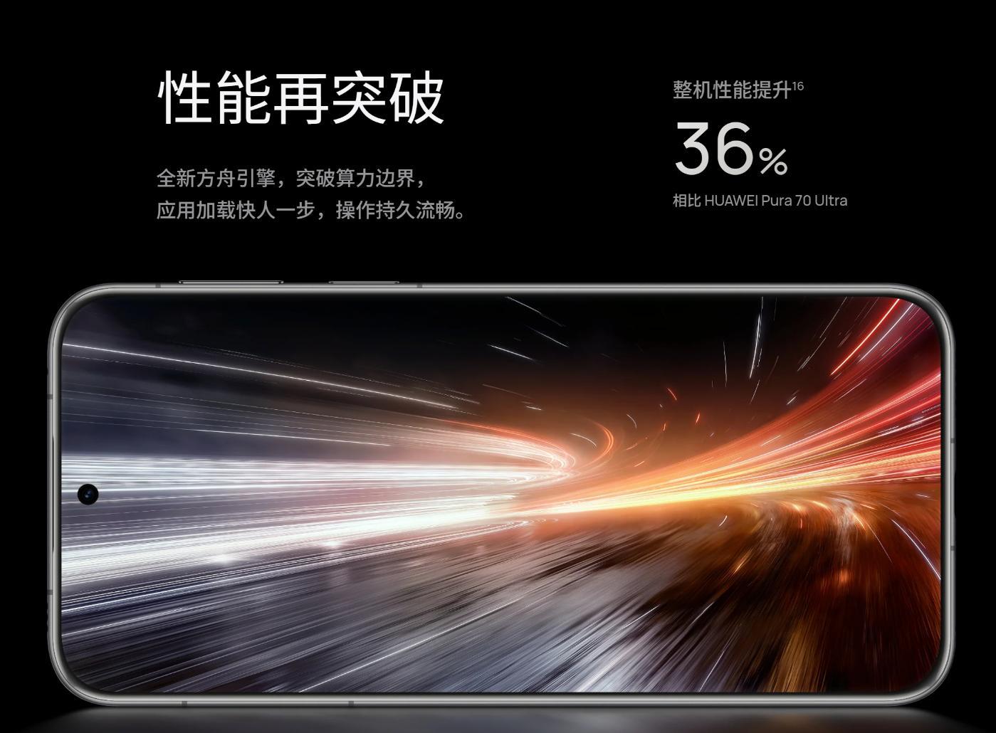 而在性能方面,根据华为官方数据,得益于全新的方舟引擎,相较Pura 70 Ultra,Pura 80 Ultra的整机性能提升可达36%。