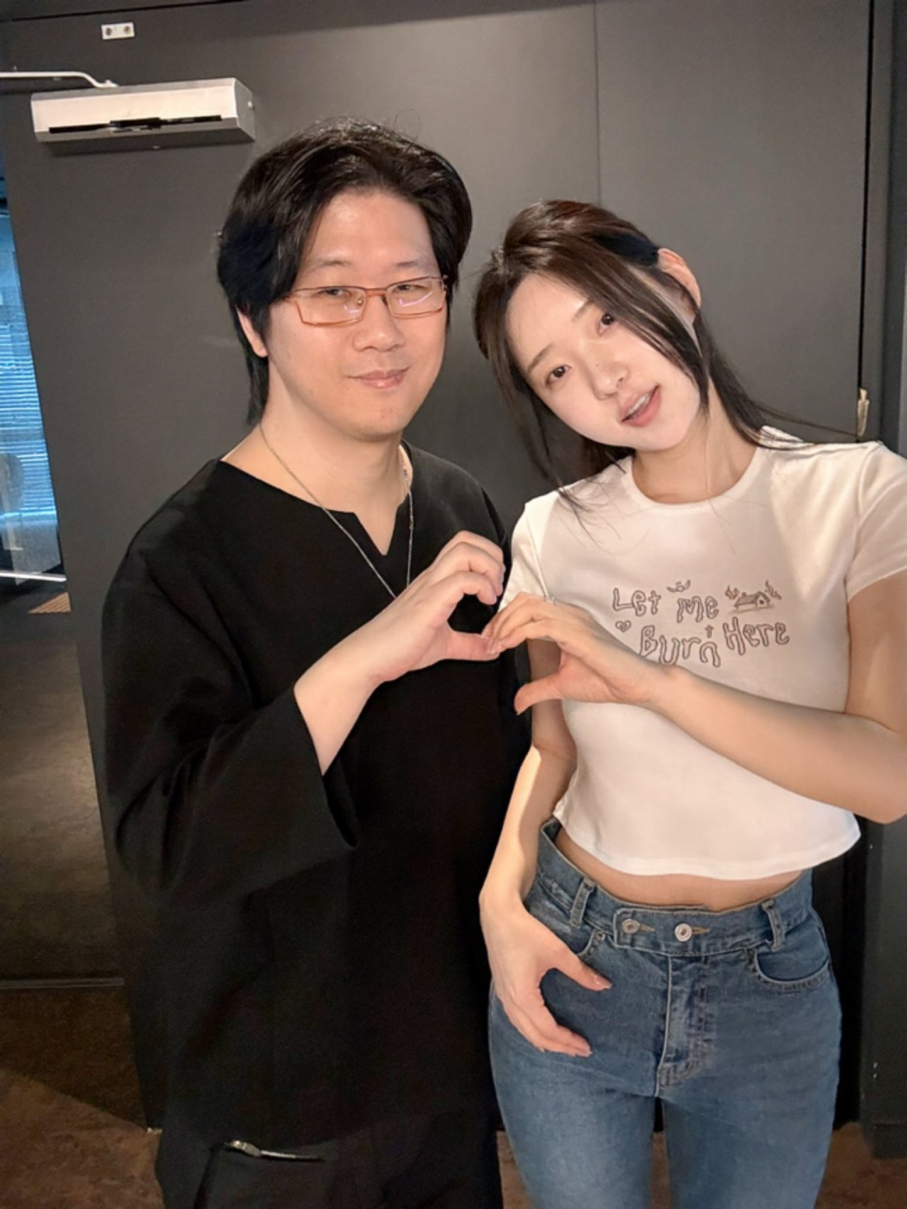 《剑星》伊芙体模申才恩于6月11日发推文,庆祝明日PC版正式发售。晒出与剑星制作人金亨泰的合影,同学们让我们一起来看一下金亨泰的表情吧~