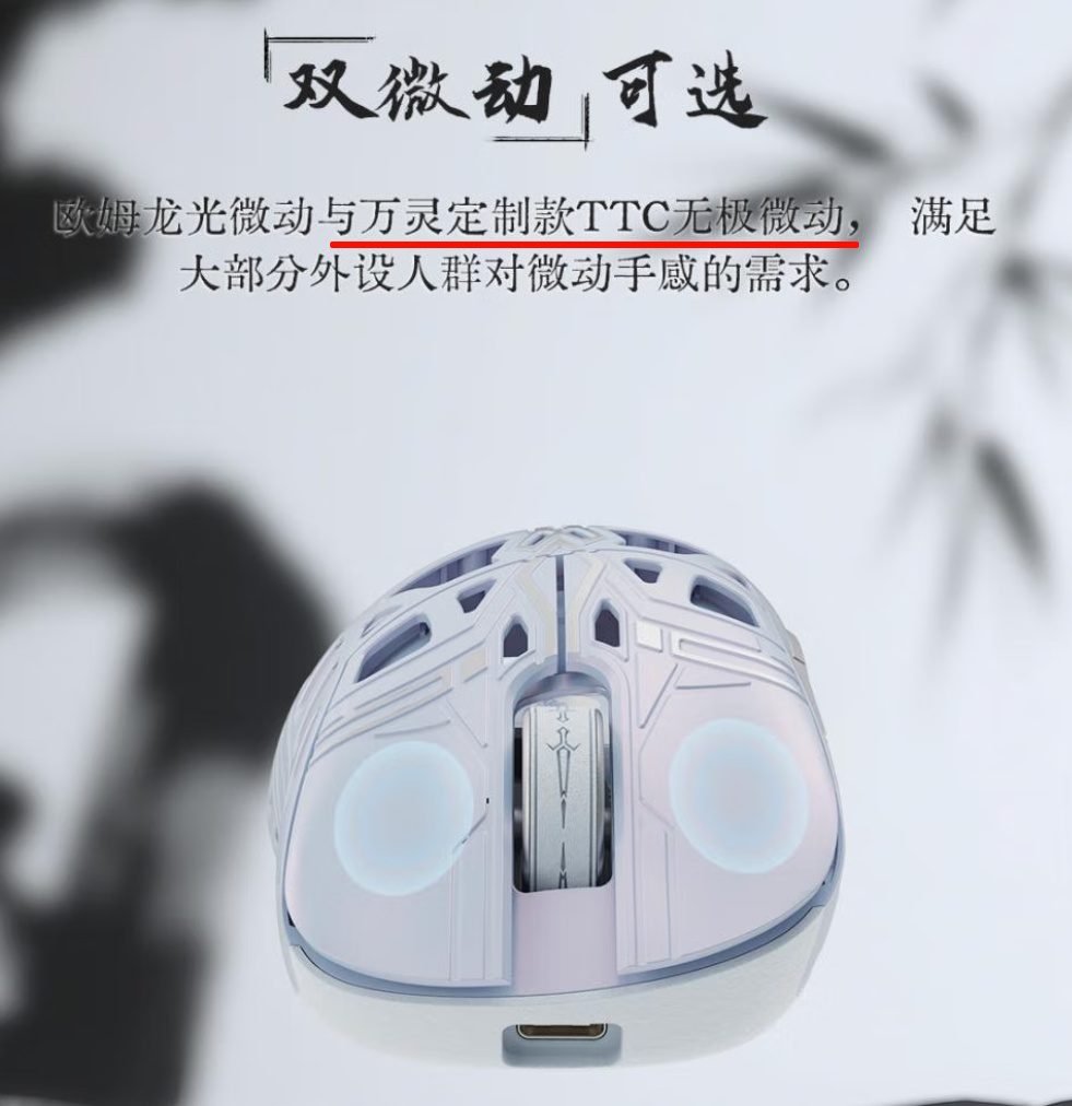 配置方面,这只鼠标几乎挑不出毛病。PAW3950传感器,TTC无极全透黑点和欧姆龙光微动都是顶级微动,支持8K无线回报率,主控诺迪克52840(未来能升级54系主控就更好了)。
