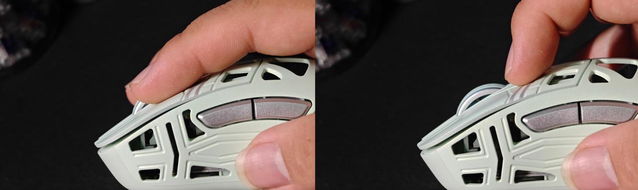 除此之外,左右盖没有做打孔,也是为了食指和中指按压舒服,但同样的,也会保留一些重量。
