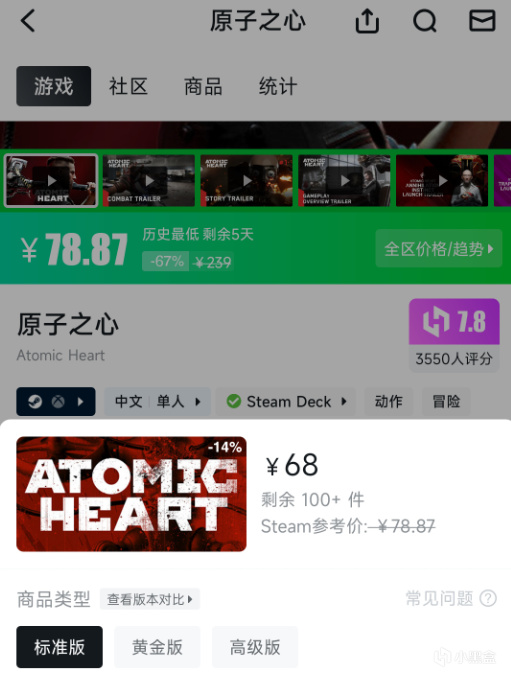 就好比原子之心這款遊戲,黑盒的超史低遠遠低於steam的史低價格,黑盒並且還可以用盒幣進行抵扣,購入遊戲相當實惠