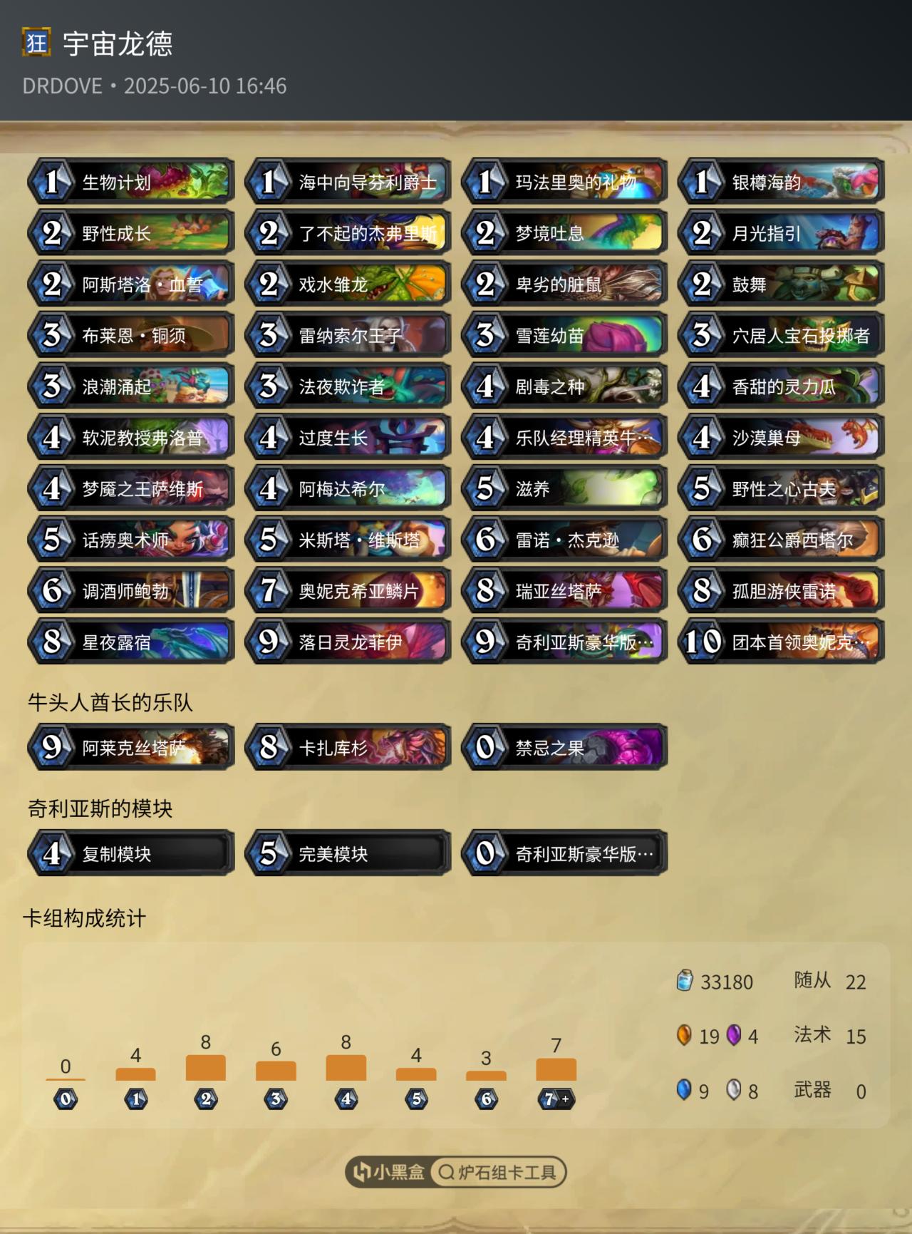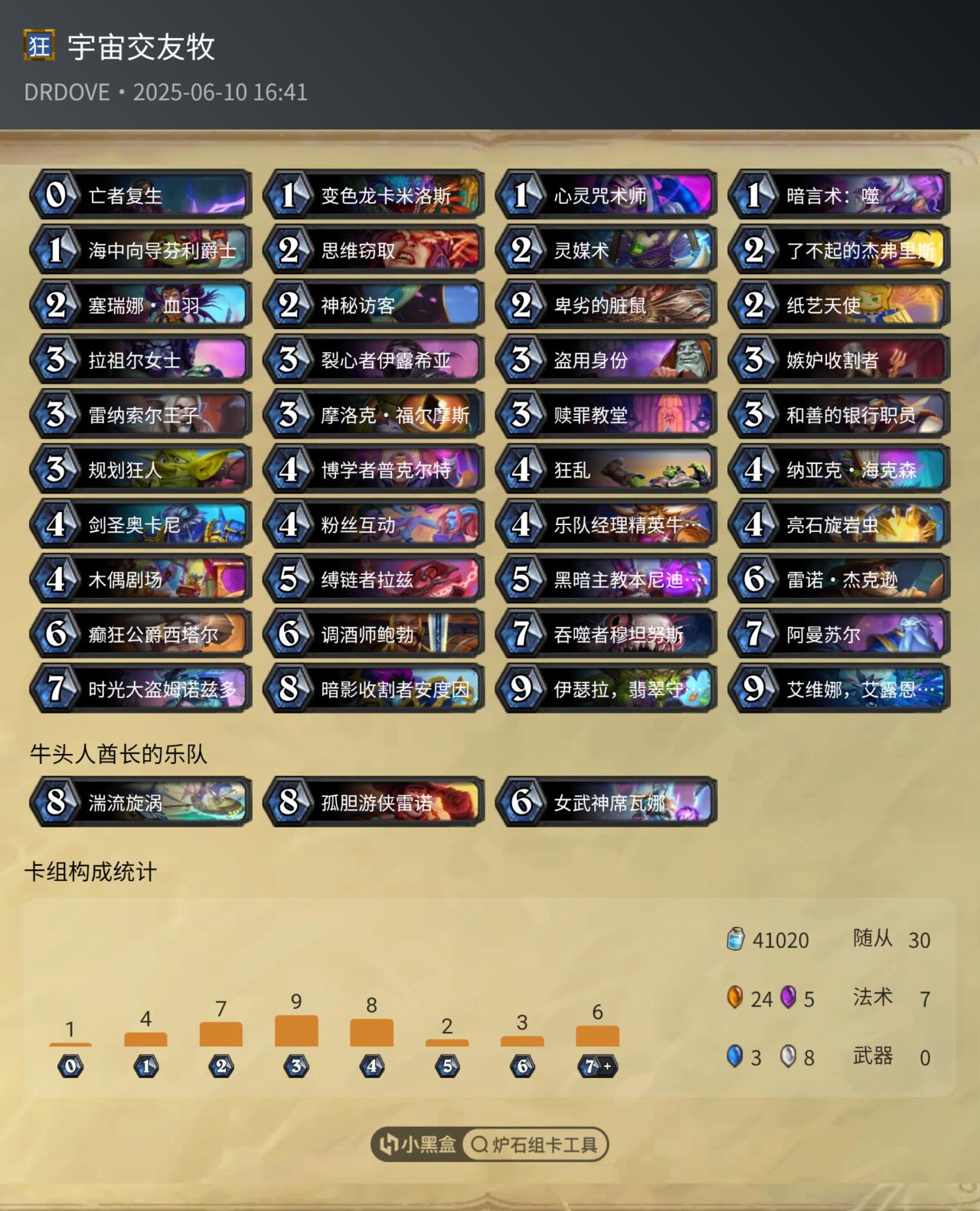大部分職業宇宙卡組的獲勝思路都不止一個,法師、牧師、盜賊這些職業不同的構築思路,帶來的可能性也真的很多,不過顯然那些構築相對固定的(宇宙元氣騎/戰吼薩/龍德)強度會更高一些,畢竟一旦某個形態的勝率足夠高,玩家們總會不約而同地往最優解靠攏(捏麻麻宇元真是王朝了)
