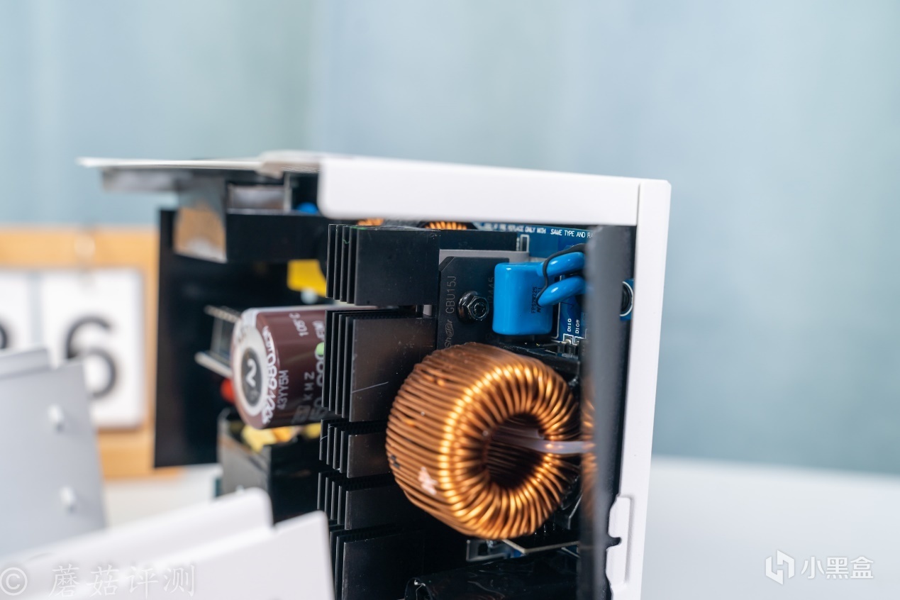 ▼LLC電路的後面,是主電容,振華自研的立式雙層變壓器,通過模塊化的線路設計,讓其擁有更小體積的同時,性能表現也更加出色,可以更好的提高運行效率。