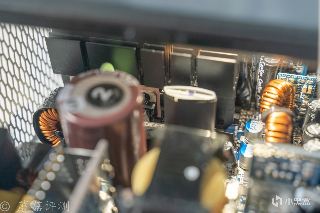 振華這款LEADEX PROA金牌全模組電源的整體表現真不錯,電源整體的顏值很漂亮,除了那個發光的模組線接口之外,蘑菇最喜歡的就是這款電源的散熱風扇的格柵設計,其把電源外殼的一整個側面都作爲散熱格柵,中間有菱形的開孔,散熱表現更加優秀的同時,視覺觀感也很不錯,更不會影響裝機兼容性。