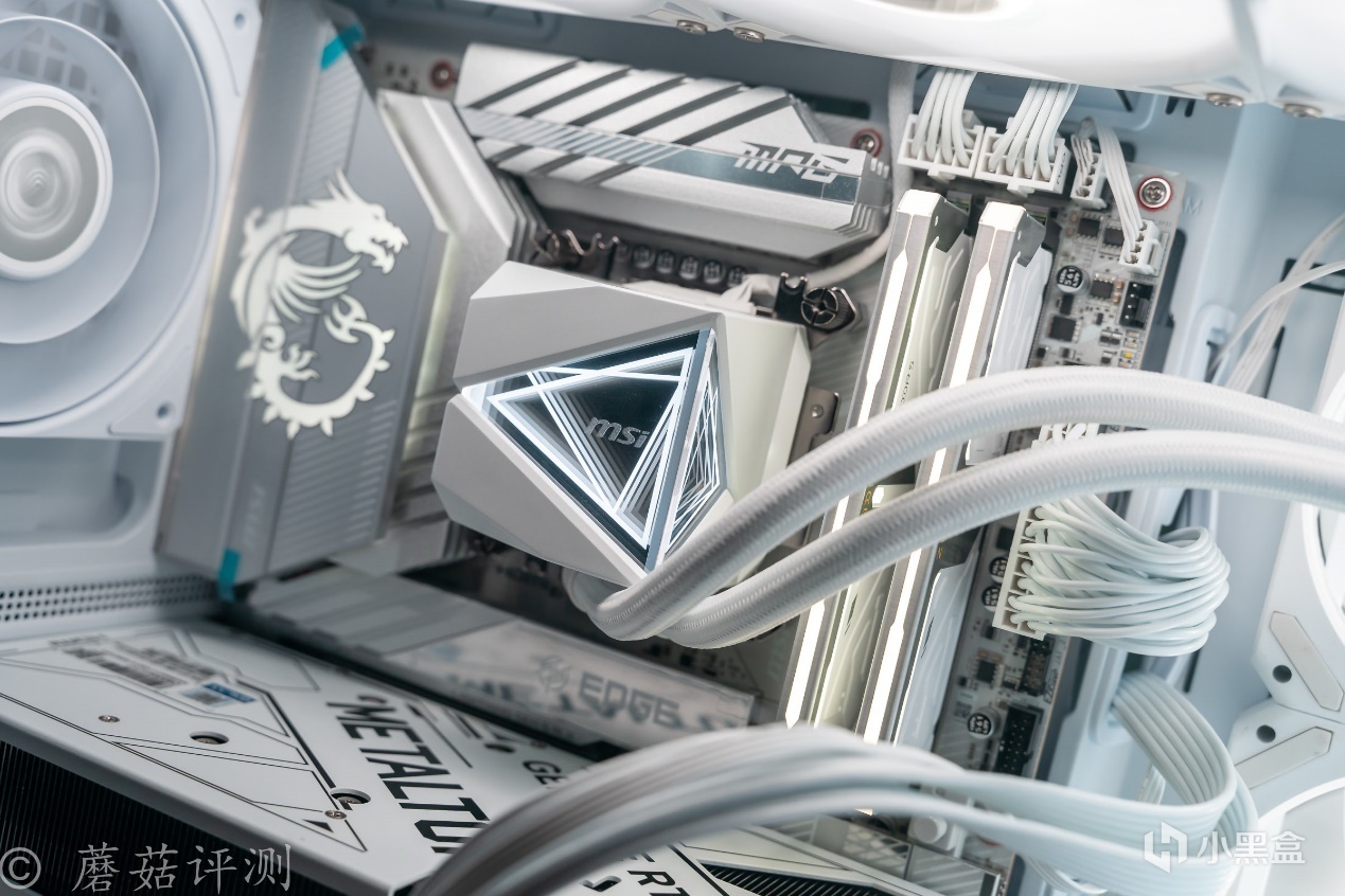 ▼水冷是微星的寒冰I360白色一體式水冷,水冷頭頂部採用雙面無限鏡設計,真好看。