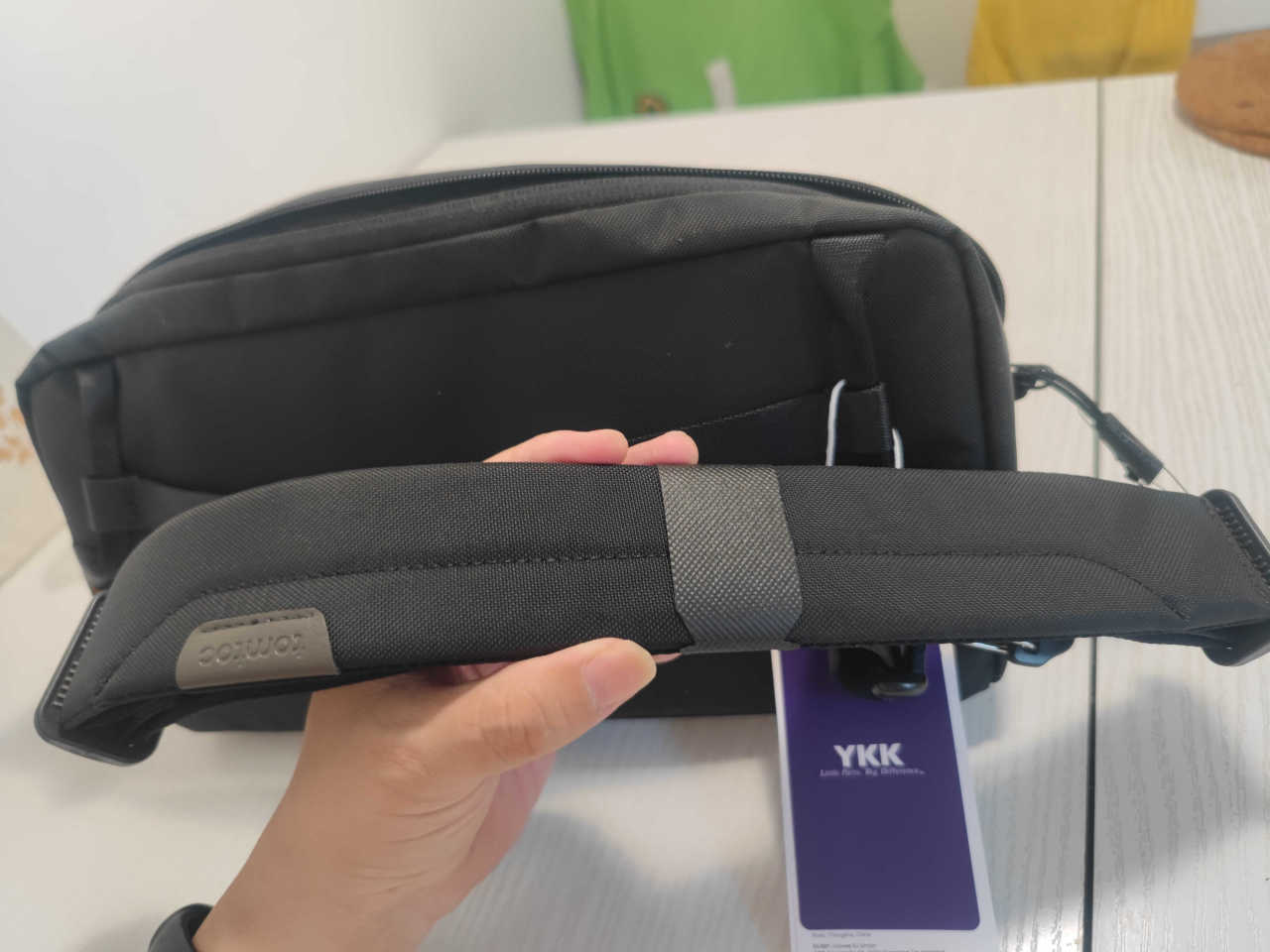 最後說說外觀,外觀個人覺得很簡潔時尚。包的內側有個提手,可以手提。提手兩側可以接上隨包附帶的肩帶,肩帶有加厚加寬處理,以保不勒肩膀。