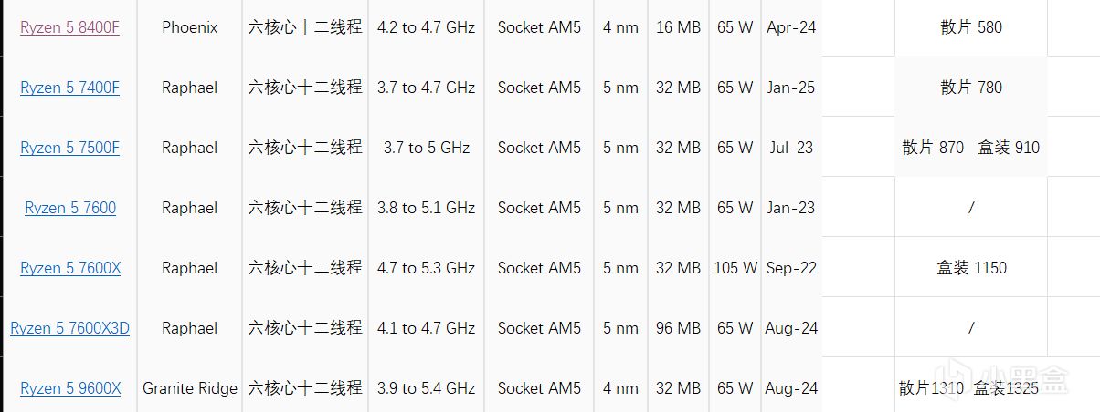 就剩下7500f跟9600x了,比比盒装跟散片价格,7500f推荐散片,9600x推荐盒装。