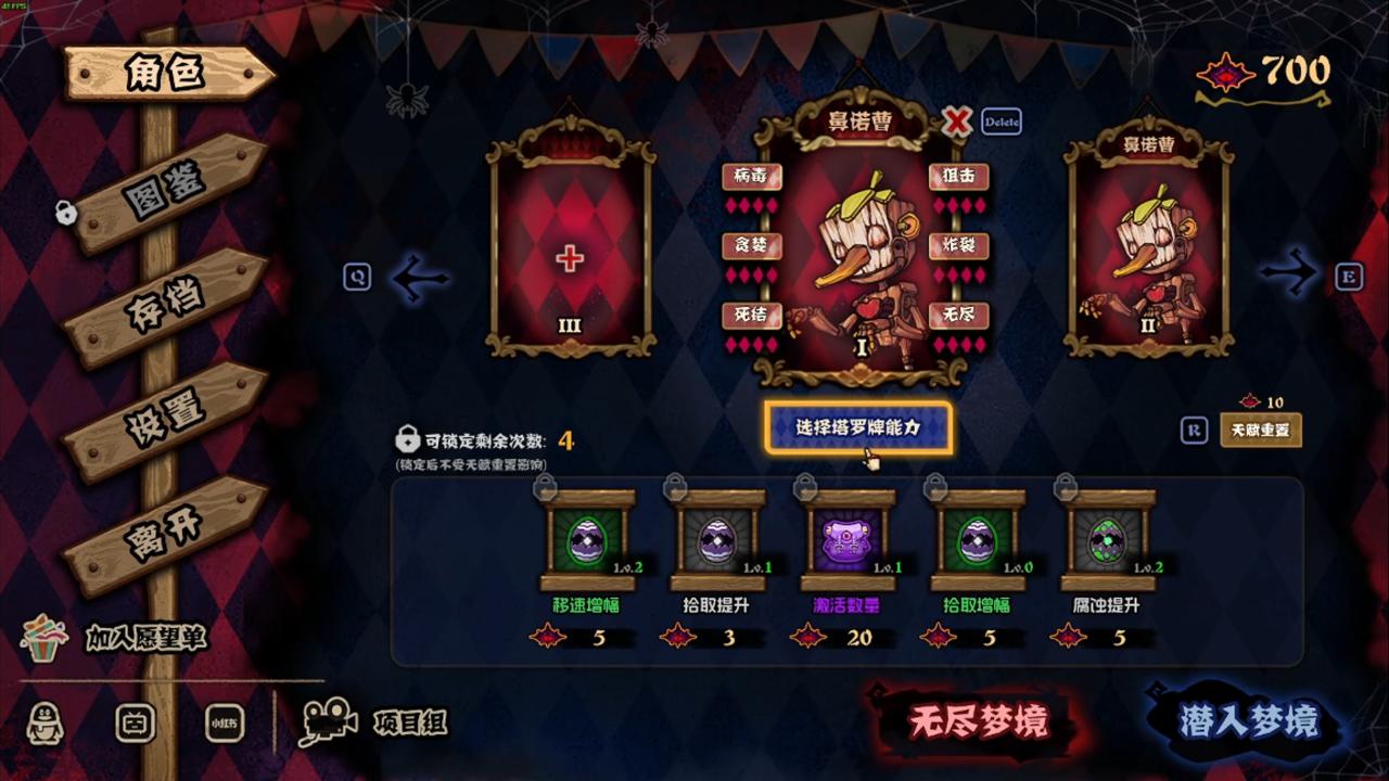 闖過BOSS關,獲得碎片,湊齊碎片即可解鎖額外角色。在局外養成方面,分配天賦點獲得額外加成,與構築流派搭配,更容易成型。