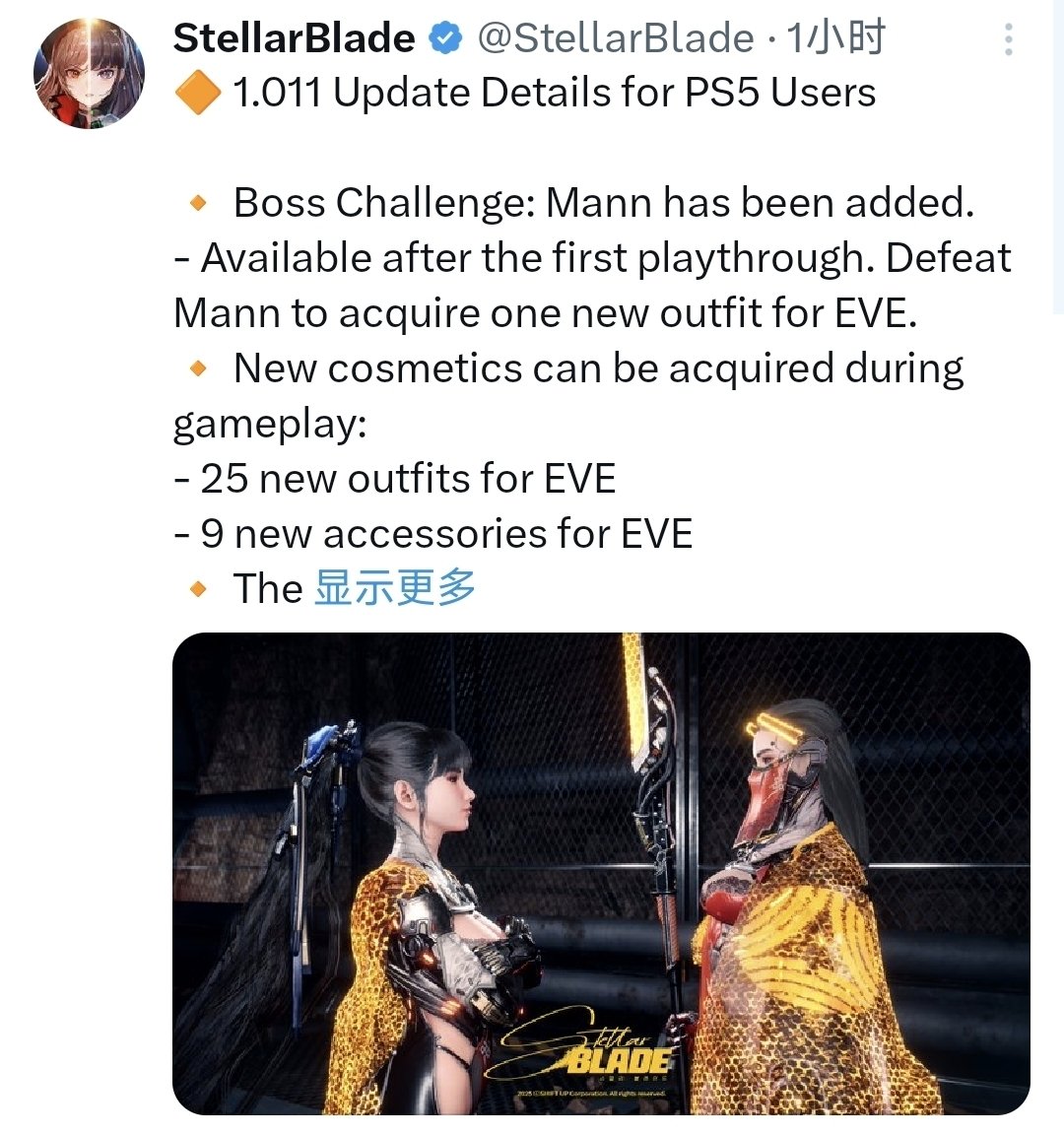 劍星推文發表了對於PS51.011版本的更新內容,關於PS5無法通過DLC升級包獲取NIKKE聯動皮膚,官方並未更新回應,還在商討中…