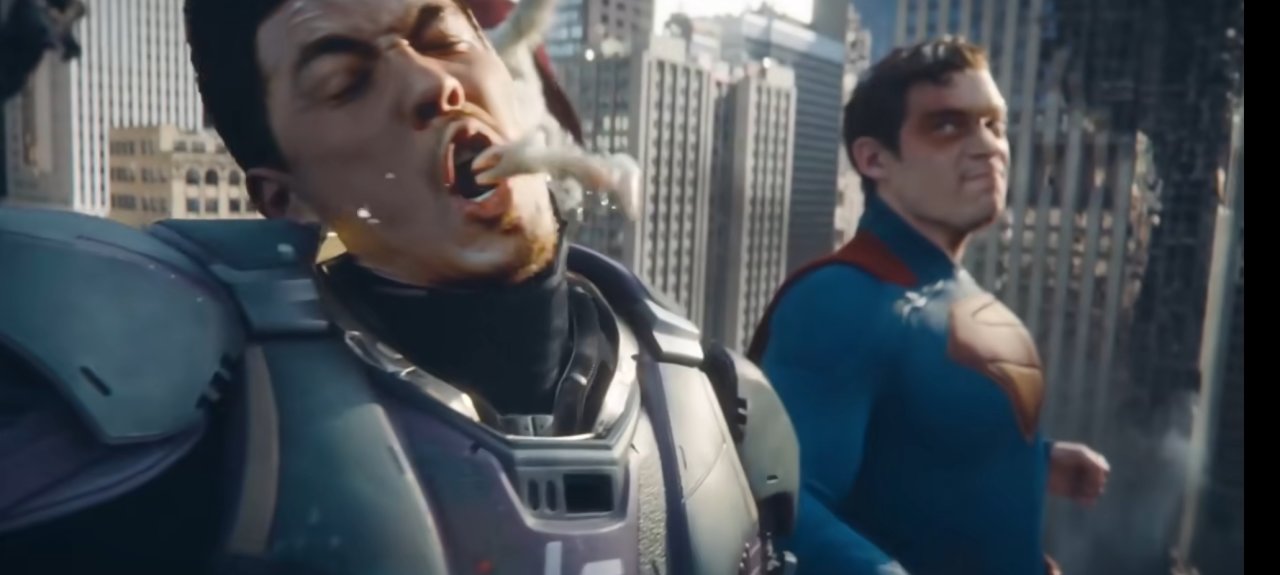 这里给了反派一拳,表情真的让我觉得和超人不搭边,纯纯小孩子打架。