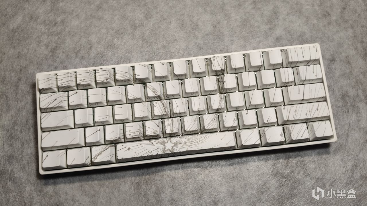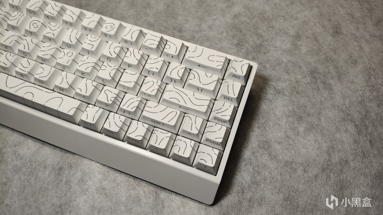 鍵盤結構爲gasket,五層填充,定位板四周做了硅膠套小耳朵,按壓起來更加軟彈,我這個陶瓷版本軸體採用了桃C拿鐵軸,觸發力度:42±8gf,觸底力度:50±10gf 觸發行程2.0±0.4mm觸底行程:3.5±0.2mm,陶瓷鍵帽手感相當溫潤。