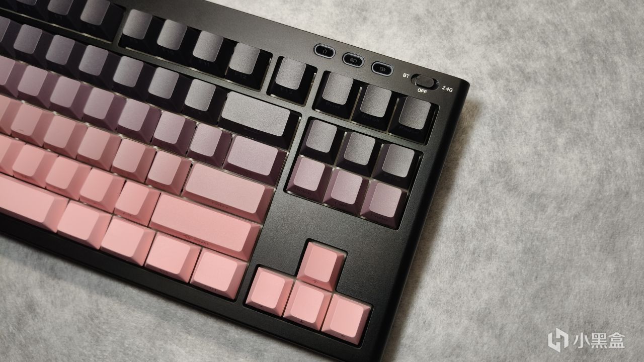 我這把是陶瓷鍵帽版本,87佈局剛好也是我最常用的配列,ek87pro外殼手感很舒服,四周做了倒角不會更銳利,三模切換撥杆放在了鍵盤左側,切換模式非常順手。