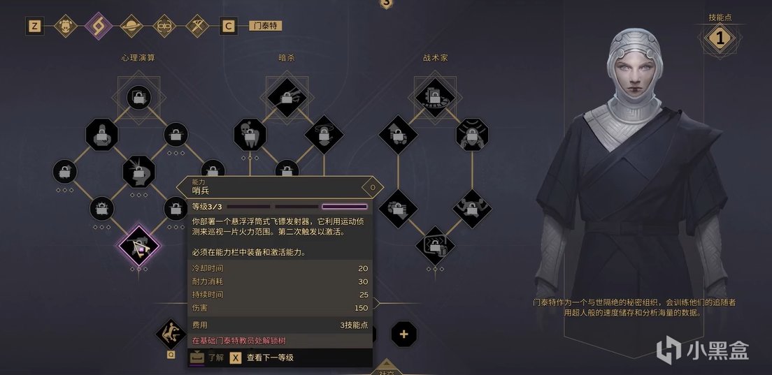 门泰特学派前期主要技能:哨兵(炮塔)/毒素胶囊/防护墙(防守为主)