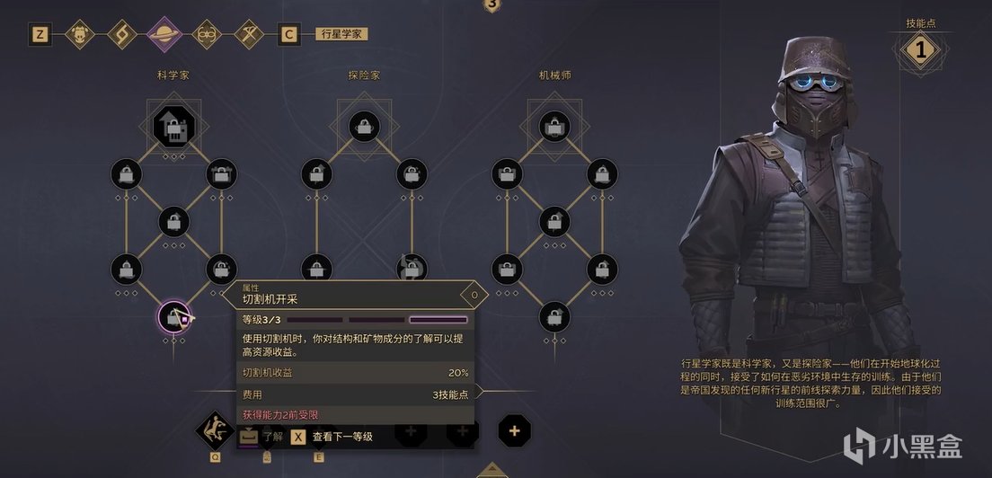 行星学家:没有主动技能/均为被动技能及属性(采集挖矿探索首选,优先提升等级)