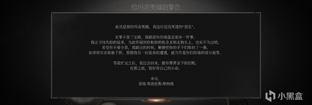 擊敗最終BOSS“血藝師—阿萊基諾”後再次返回暮色克拉特酒店,根據藍色蝴蝶的指引來到蕾婭的房間,找到最後一份錄音。