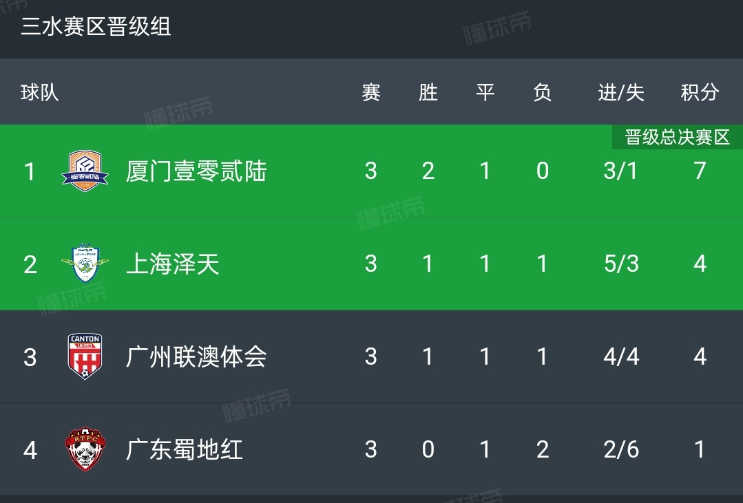 以下爲2024年廣東省足球超級聯賽積分榜和最終排名: