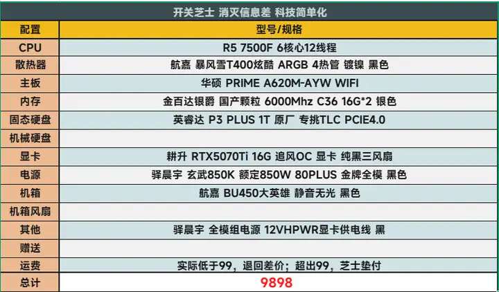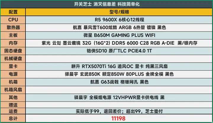 如果追寻性价比低价,那1W以下都能配出5070TI...