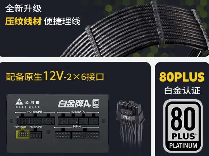 2、电源是金河田A+ 850W 白金全模组。金河田本身是入门的代名词,但A+系列是实打实的高端!10年厂家质保,支持个人送保