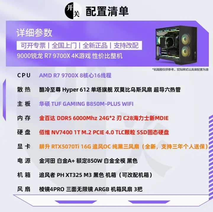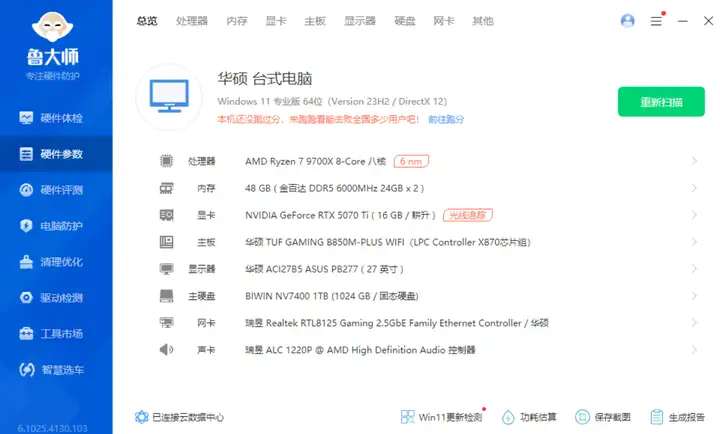 具体配置奉上,是R7 9700X+RTX5070TI:
