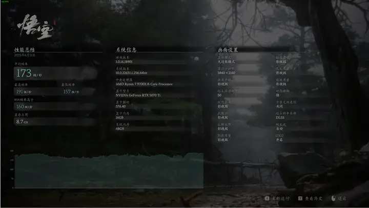 由于时间有限,我只测了R7 9700X+5070TI的配置: