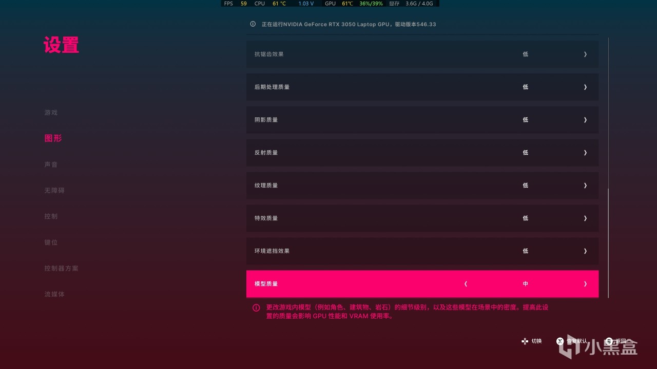 模型质量和纹理如果大家是1K可以适当往上拉到中应该没问题!