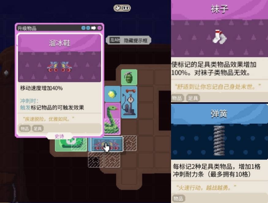 配合弹簧还有玩法!增加冲刺耐力条(短距离无敌位移),穿上"溜冰鞋"飞一样的感觉(叠加袜子食用更佳)