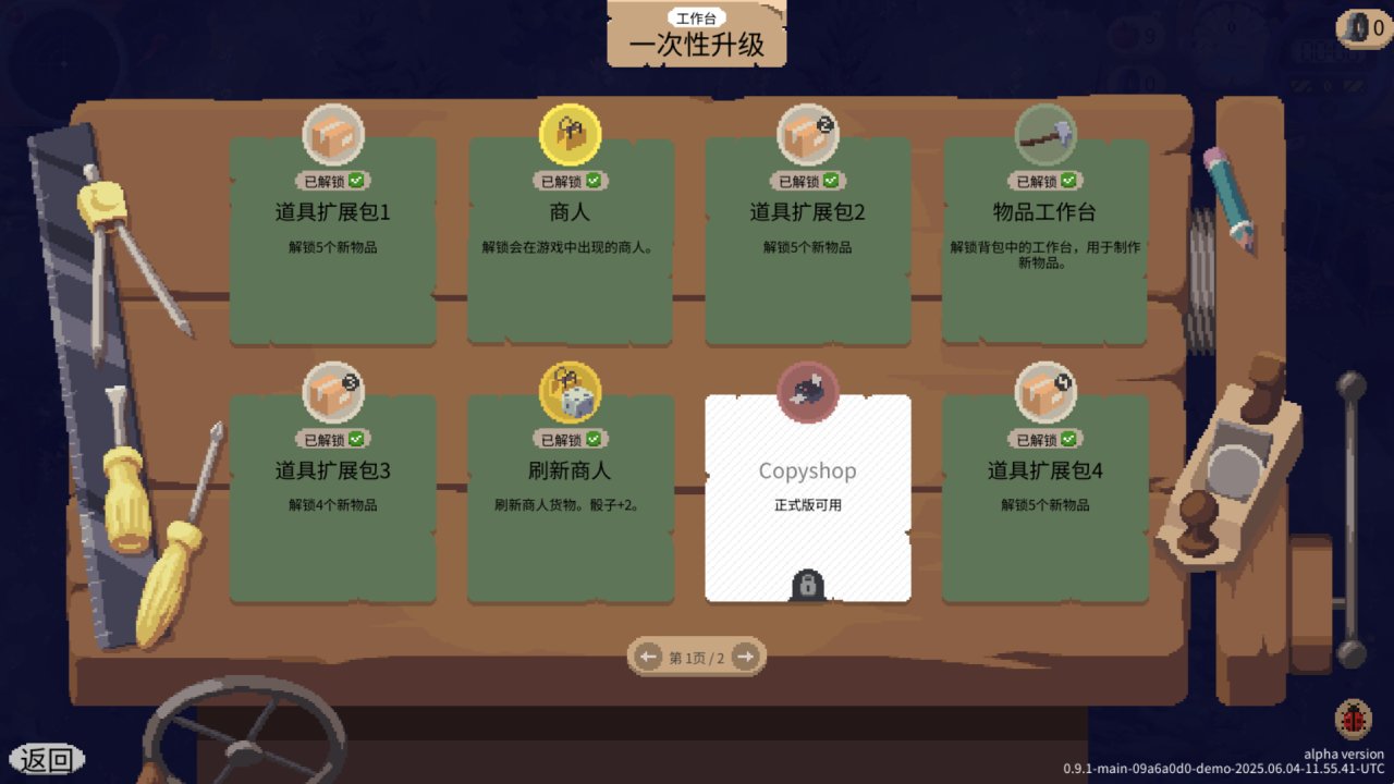 通过结算获取的胶带解锁,商店、工作台、物品拓展包,随着不断的解锁玩法也更多样,现阶段游戏没有图鉴,只有通过局内获取判断后再进行组合