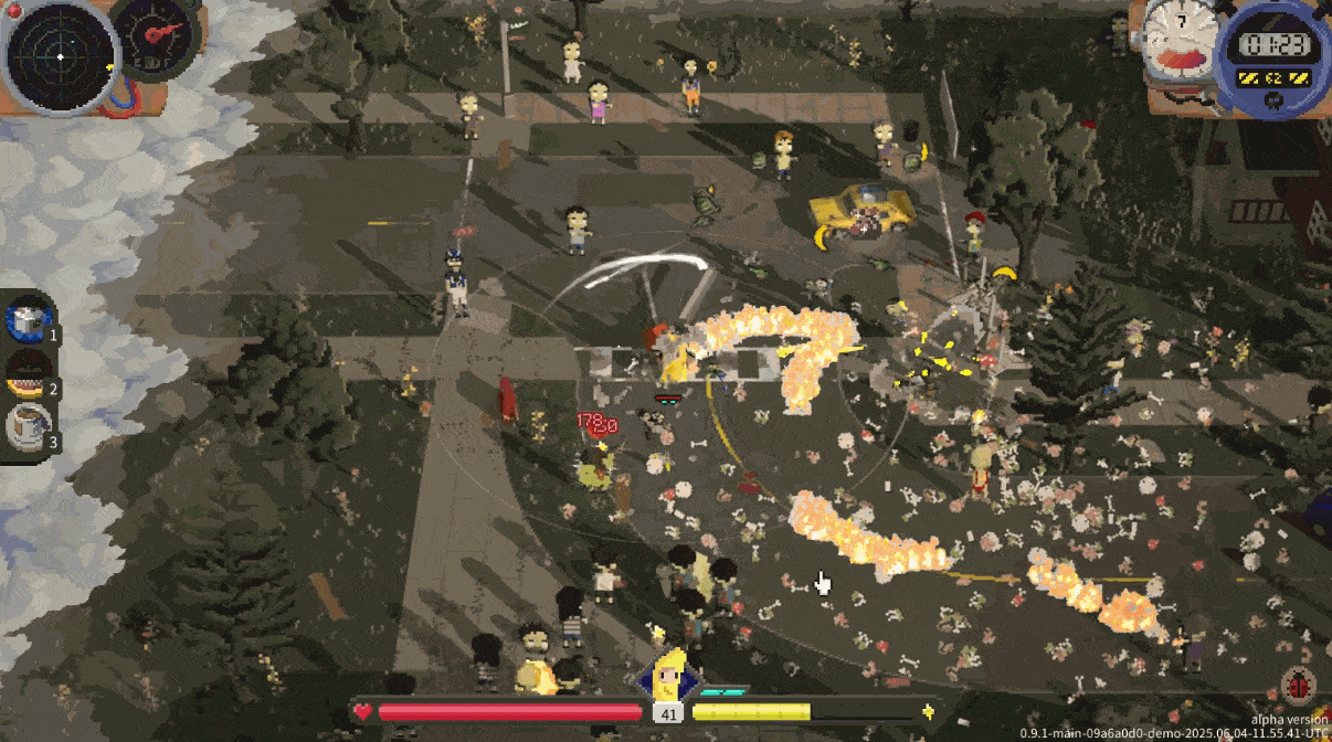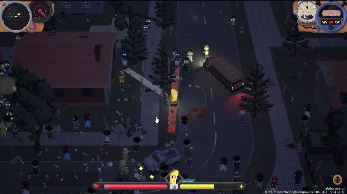前期需平衡“搜索资源”与“清怪升级”,最好先集齐巴士所需的汽油再清怪,过度拖延会导致尸潮碾压,一个走位不慎(撞树上)被包围血条骤降!