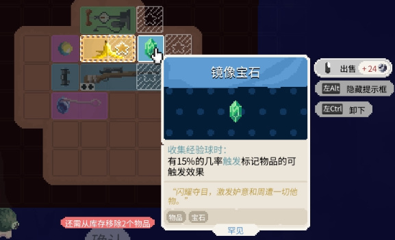 与之契合的物品镜像宝石:杀怪拿经验球,可触发抛掷类物品(瓶子、手榴弹)、火焰鞋等