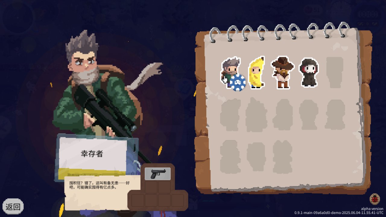 初始角色幸存者:开局背包格子给的多,没有特殊武器或物品