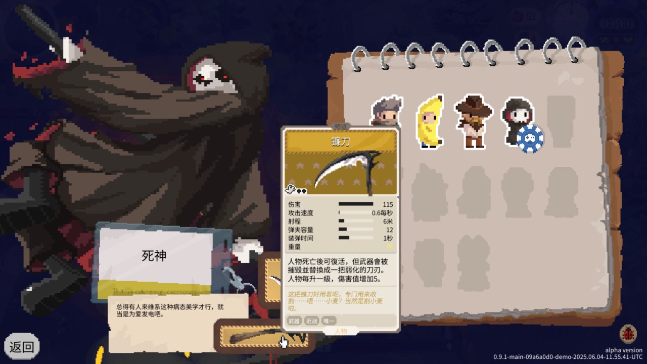 死神新角色:遇见死神,解锁条件需在关卡内坚持12分钟出现,并且需要被被打到至少一次即可!