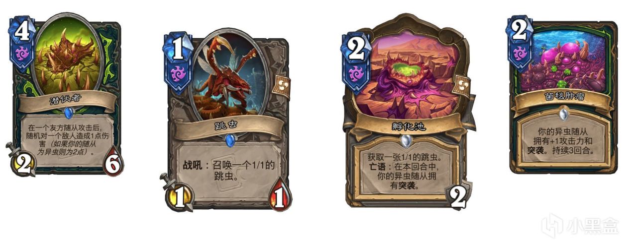 先看新體系的這幾張卡,除了3費和6費的兩隻野獸比較笨重,其他的體系卡標準肯定是必帶的。