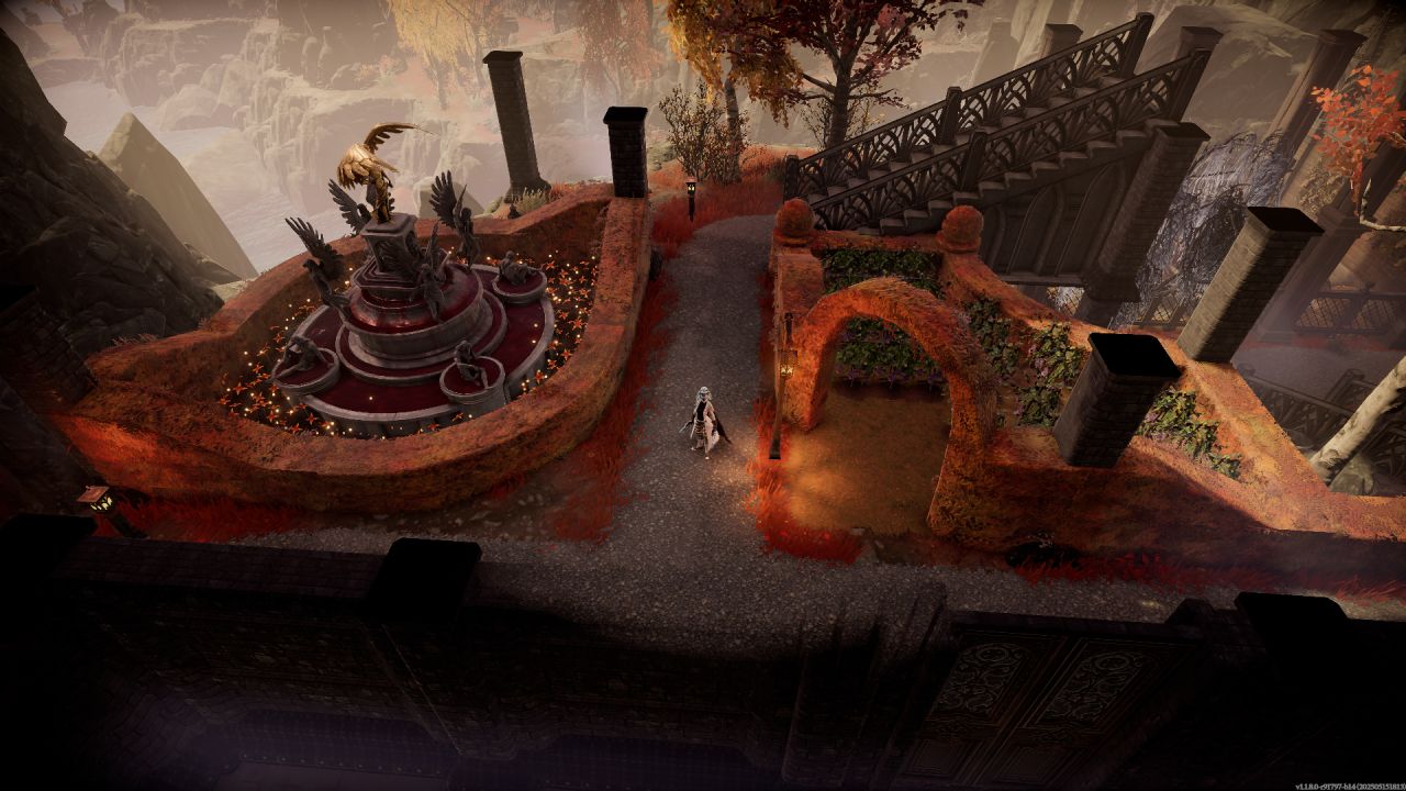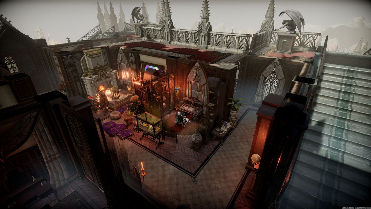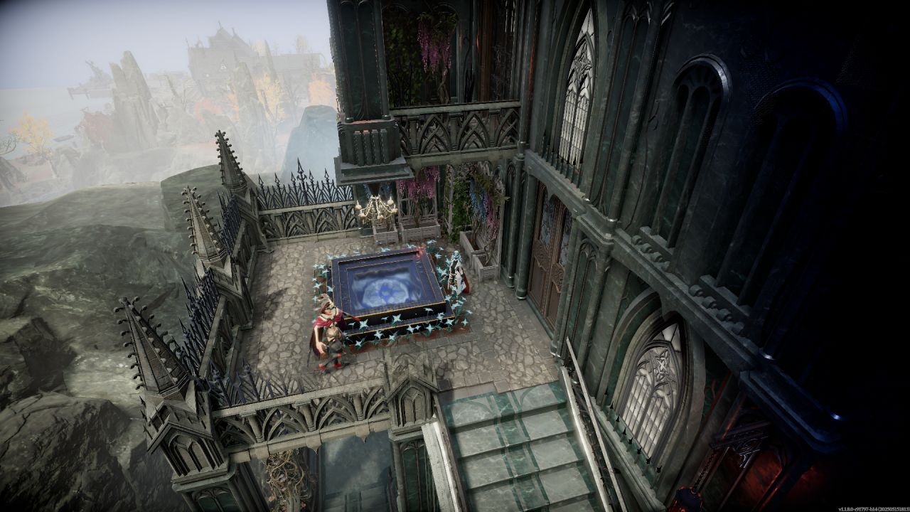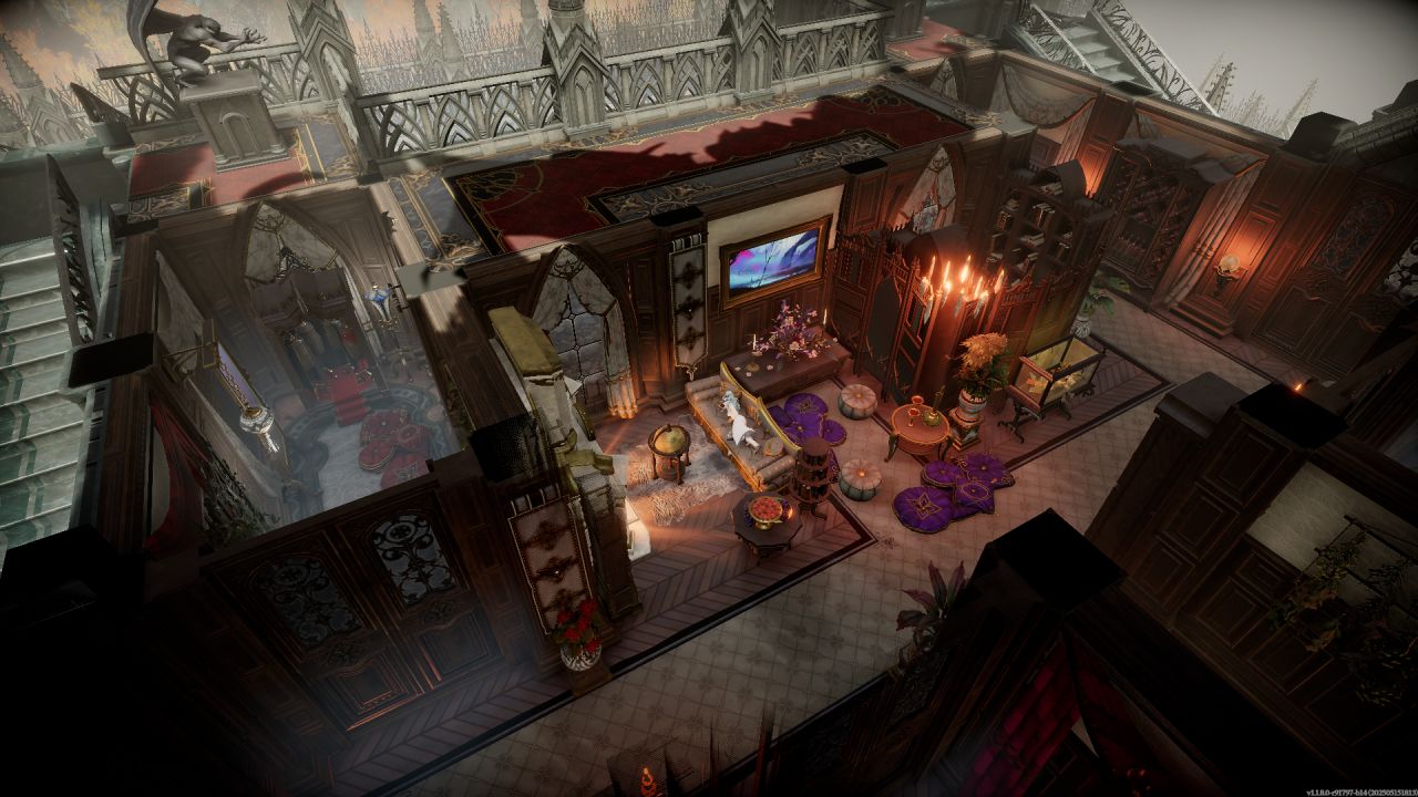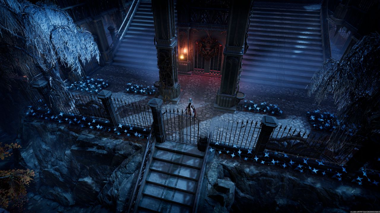 順着兩個大樓梯上來,主城堡門前用石像鬼雕塑和雪之花裝飾,塞得滿滿當當,其實單純把兩個柱子間種滿花再用綠籬一圍做個隔斷也行,但買了dlc就是要用。