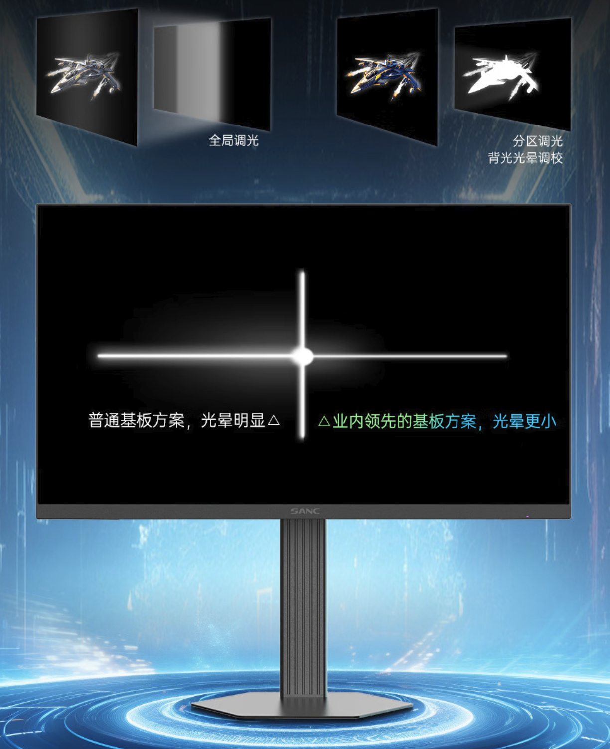 它和其他SANC的优质显示器一样,背光使用了超广色域高阶背光灯珠,这让这块屏的色彩还原更准确、游戏画面表现力也更优质,甚至还能助力视觉传达、影视等专业的小伙伴们呈现更准确的创意和作业。