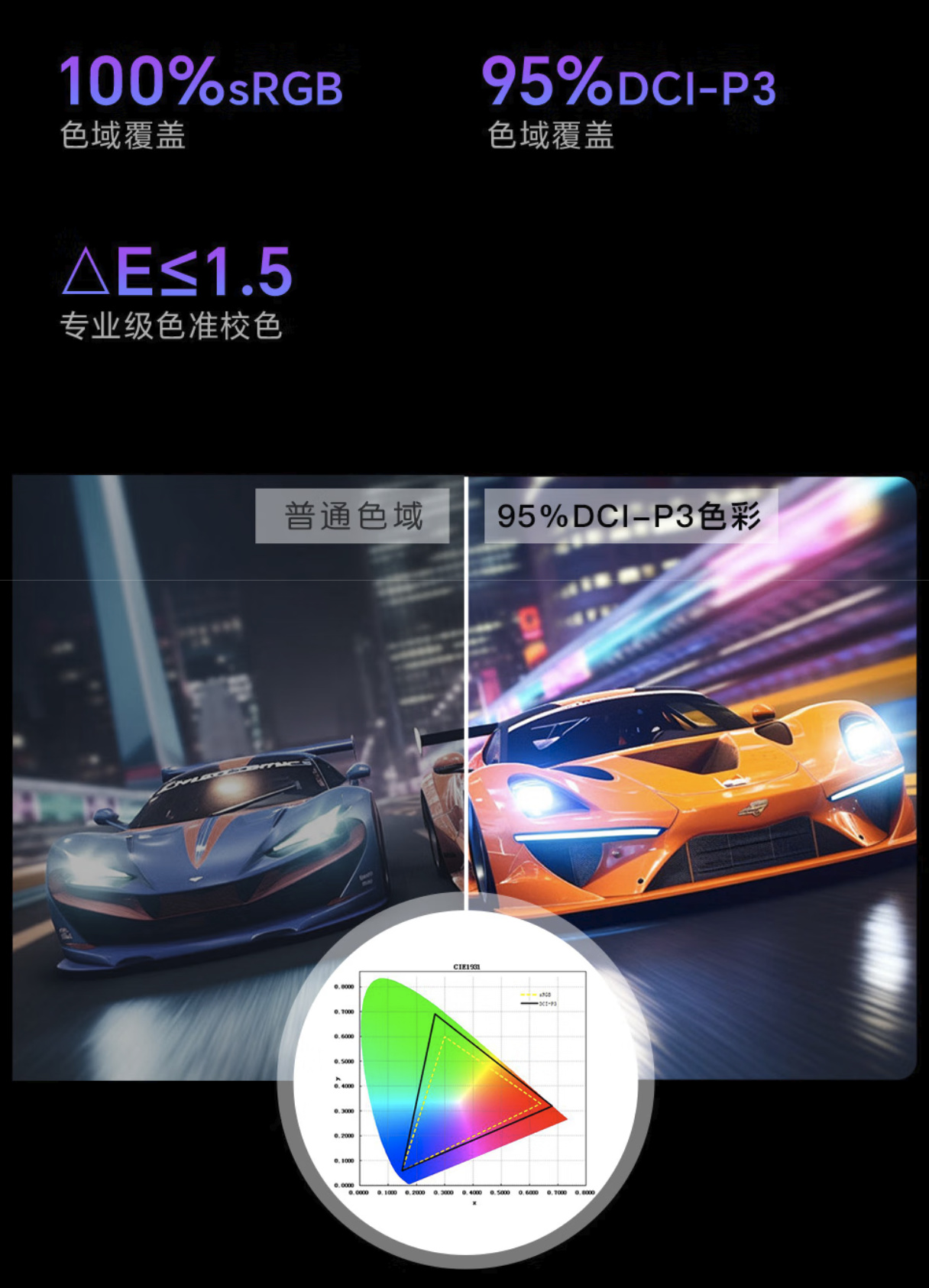 色彩方面,SANC DM72u使用了QD量子点技术,实现了98%P3色域覆盖,而且色彩精准又鲜艳,非常越级!游戏娱乐乃至办公都挺合适,甚至影视专业领域中也能有更好的表现,所以我说它是一台万金油显示器啊~